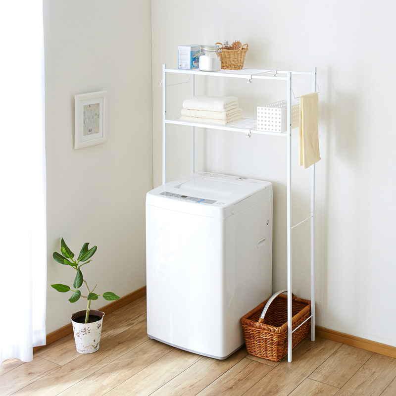 洗濯機の上を有効活用できる2段式のランドリー収納ラックです。