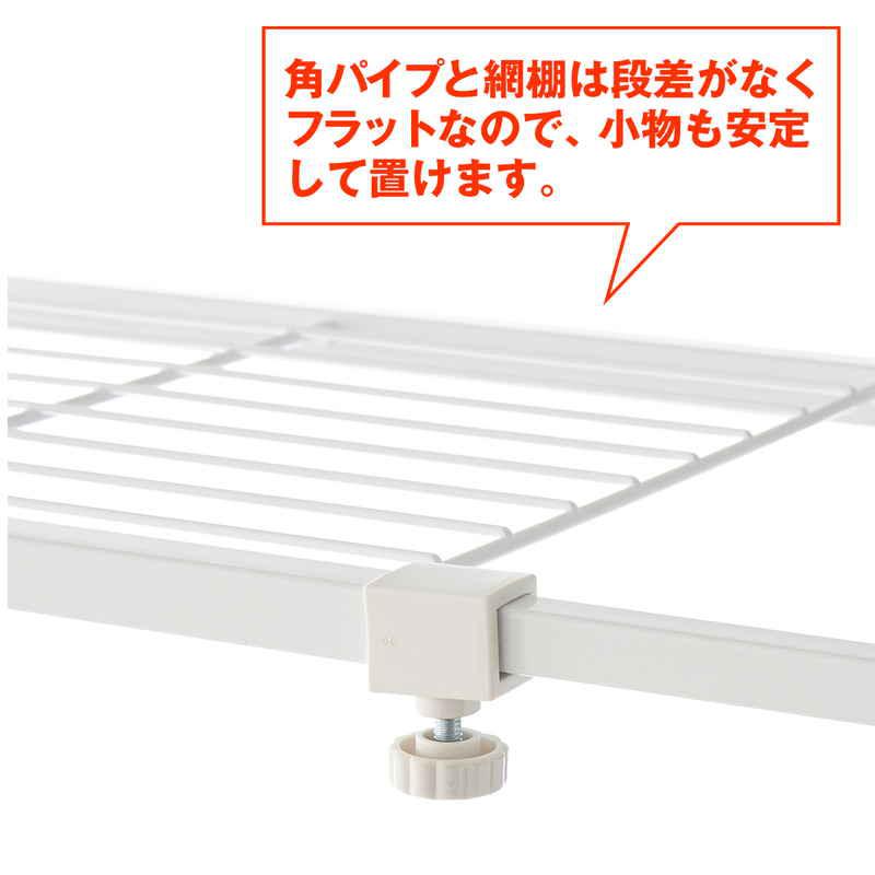 角パイプと網棚は段差がなくフラットなので、小物も安定して置けます。