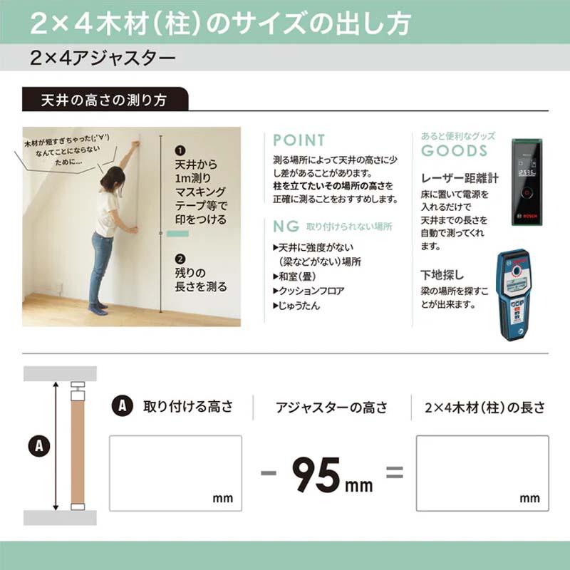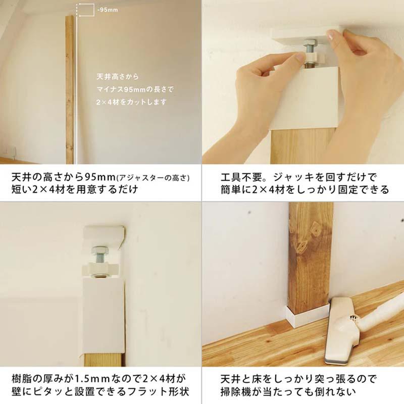 2×4木材を床と天井に突っ張り、DIYの基礎となる支柱をたてるためのアジャスター