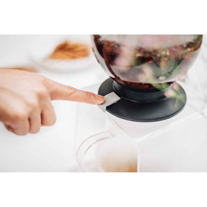 お好みの濃さになるまで蒸らした後、グレーのスイッチを押して一気にサーバーへ注ぎこみます。