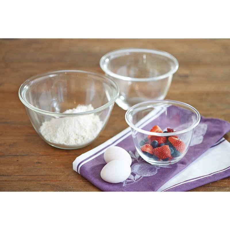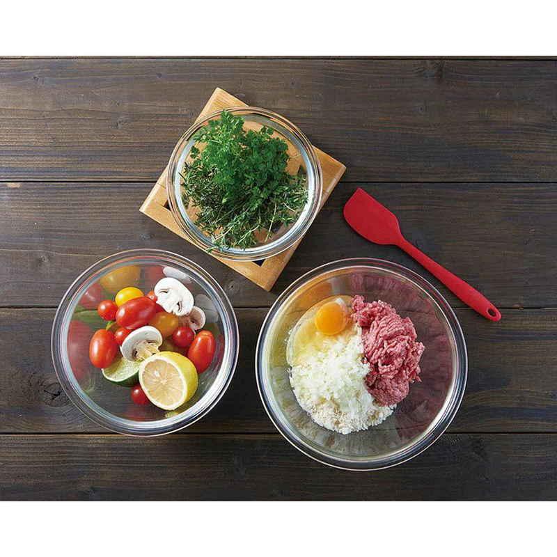 地球にやさしい素材の耐熱ガラス 電子レンジの使用が可能 急激な温度変化に強い 食洗機やオーブンの使用が可能 深さがあるから混ぜやすい 調理用ボウル 1500ml 持ちやすいフチ