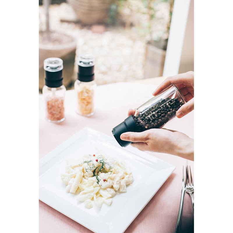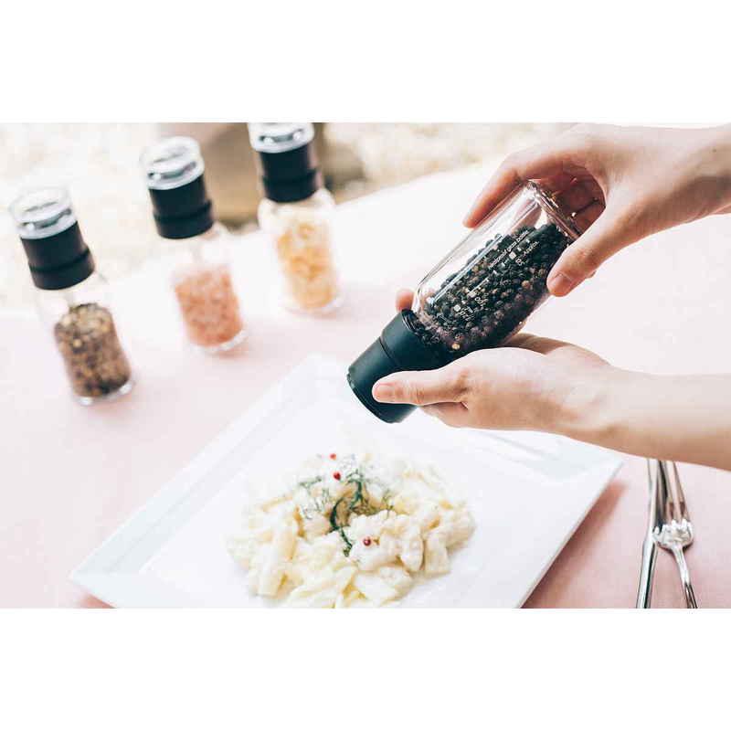 岩塩、ホールペッパー、ドライガーリックなどにお使いいただけます。