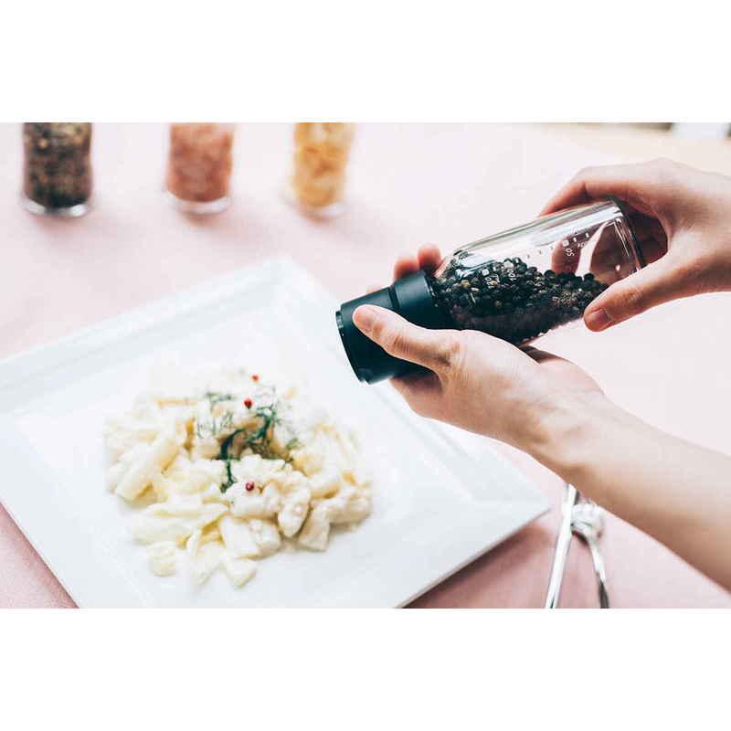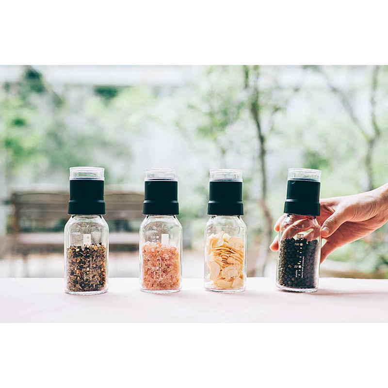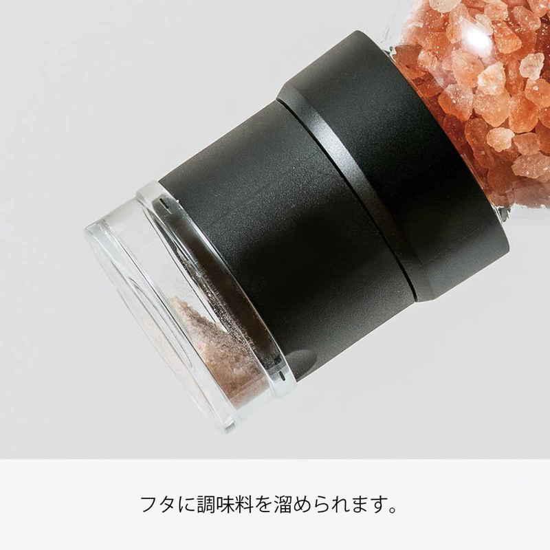 挽いた調味料をフタに溜められるので、使用する調味料の量がわかります。