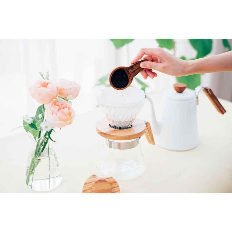 材質:ドリッパー/耐熱ガラス ホルダー/オリーブウッド 内側ホルダー/シリコーンゴム