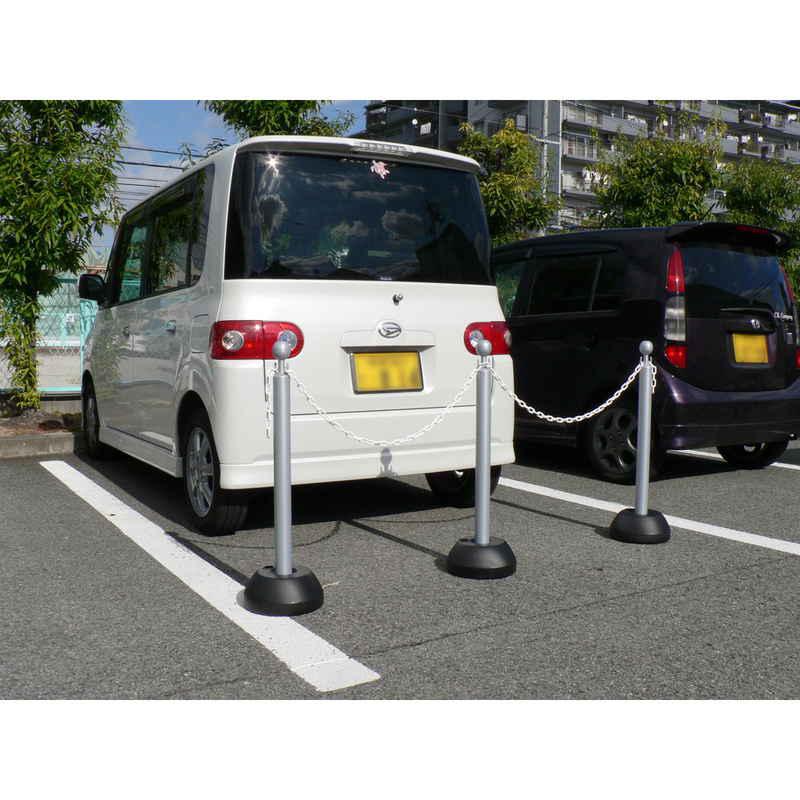 ミツギロン 駐車場スタンド チェーン付き 3本入り チェーンスタンド 無断駐車対策 ホワイト シルバー