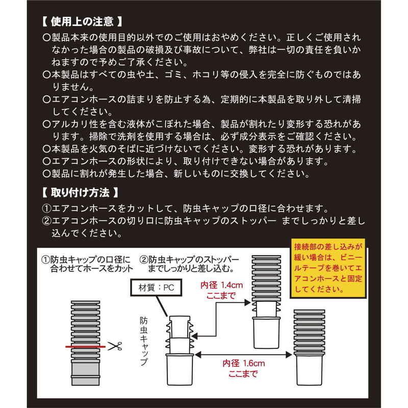 エアコンホースに差し込んで害虫の侵入を防ぐホースキャップです。