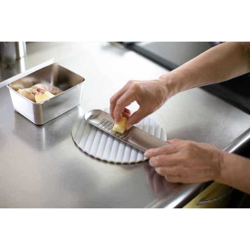 トレーのようなモダンデザインなので、そのままテーブルに出しても素敵なおろし金です。