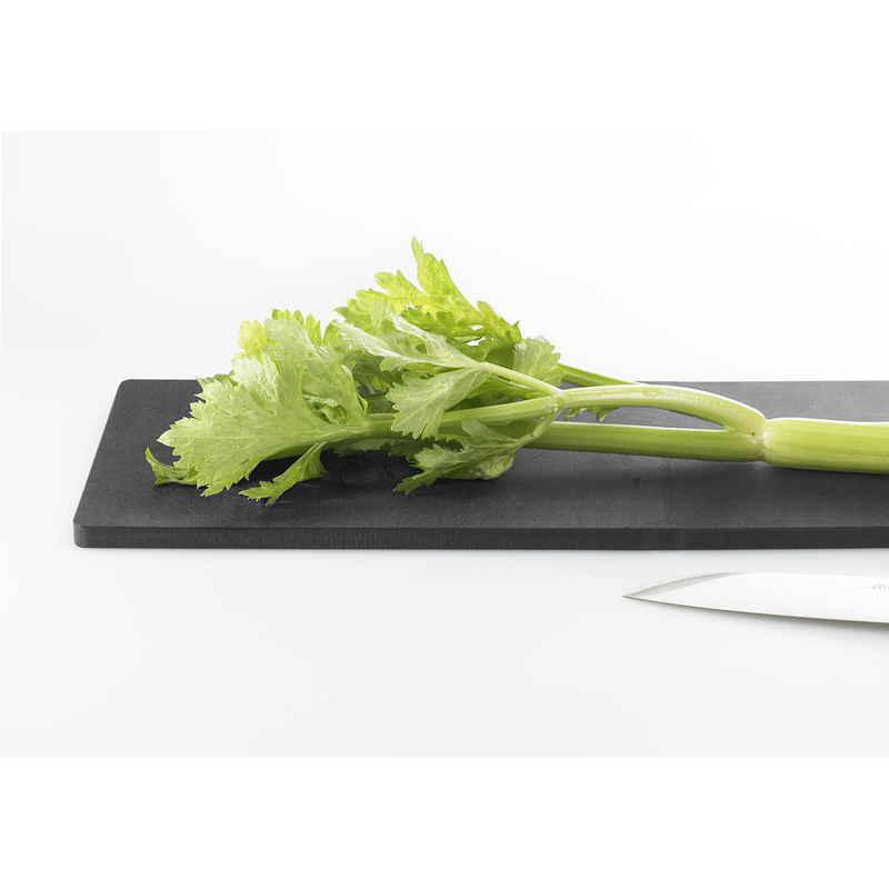 料理が映える黒色の樹脂製カッティングボードです。