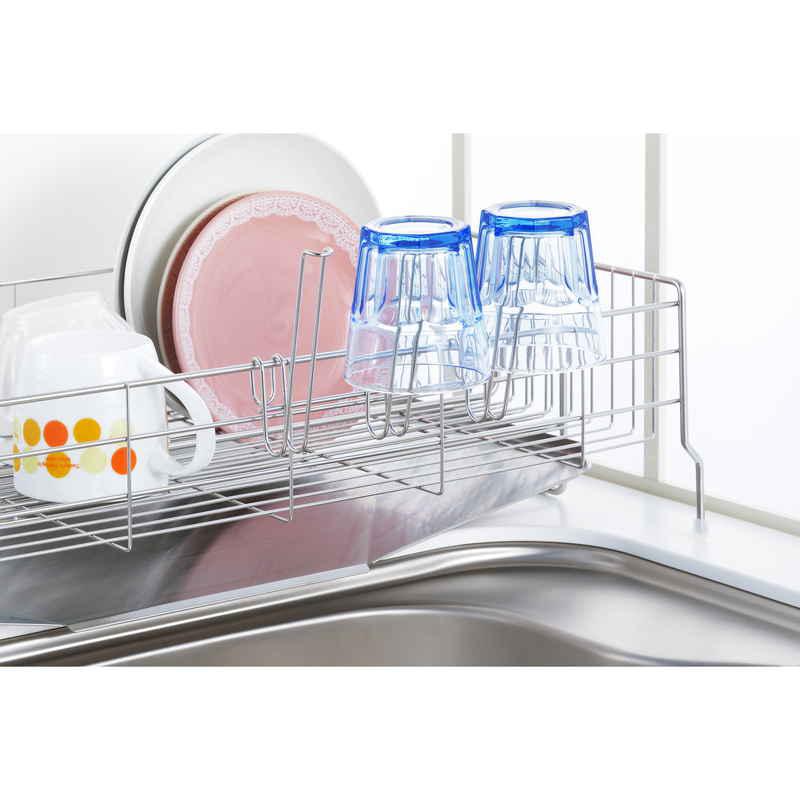 フックで簡単に引っ掛けて、気軽に水切りかごの容量を増やせます。