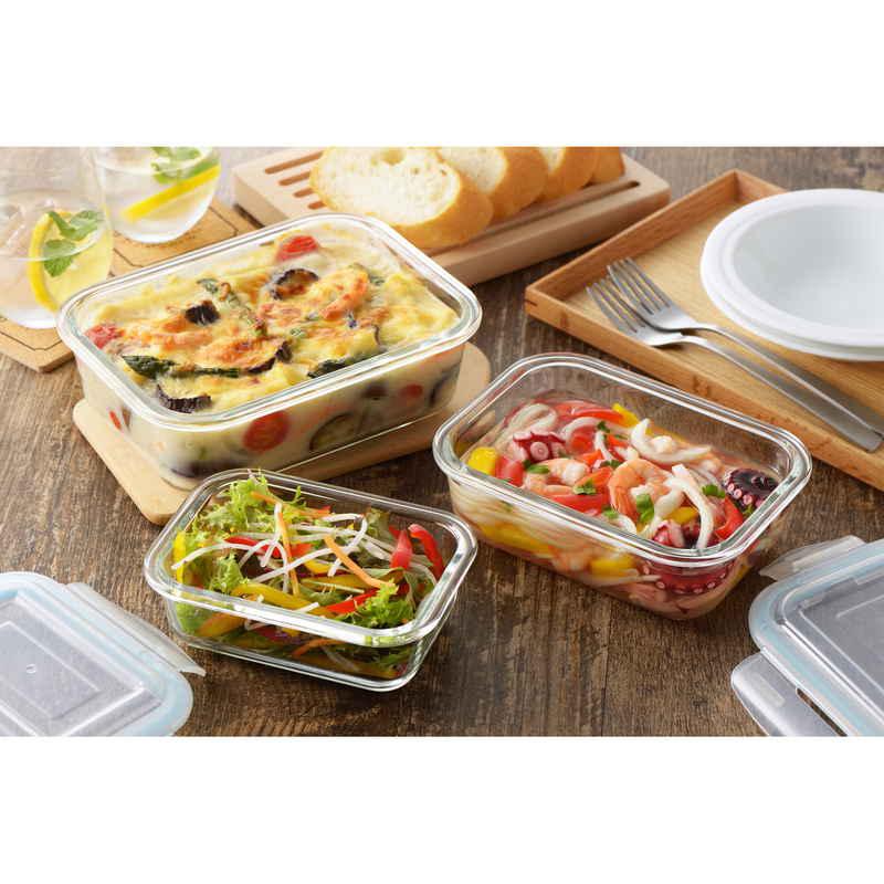 食材の冷凍からオーブンの調理までこなす耐熱ガラス製の保存容器です。