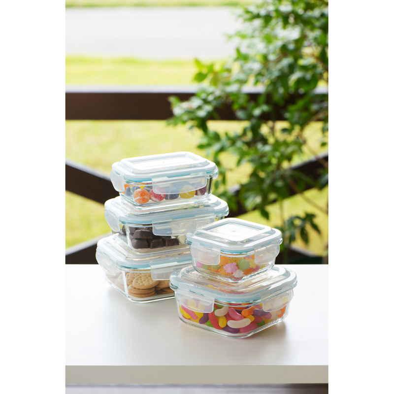 ヨシカワ 保存容器 370ml グラスコンテナ 4点ロック式ガラス保存容器