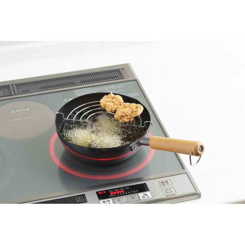 ヨシカワ 天ぷら鍋 20cm IH対応 鉄製 日本製 網付き NEWグルメパワー 木柄いため兼用天ぷら鍋20cm