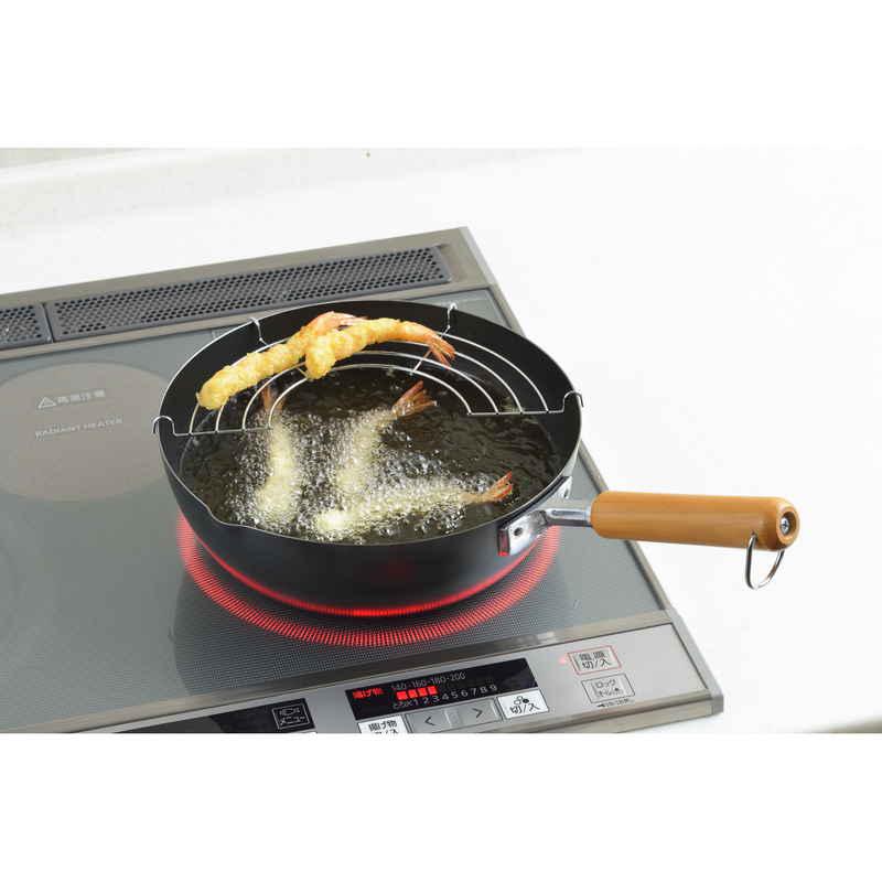 ヨシカワ 天ぷら鍋 24cm IH対応 鉄製 日本製 網付き NEWグルメパワー 木柄いため兼用天ぷら鍋24cm