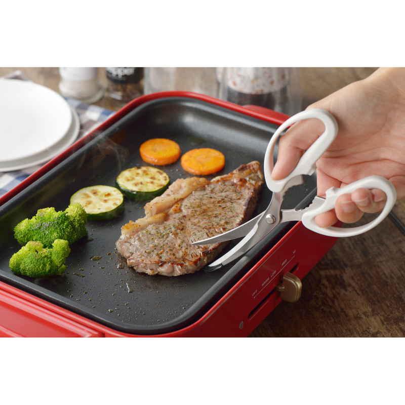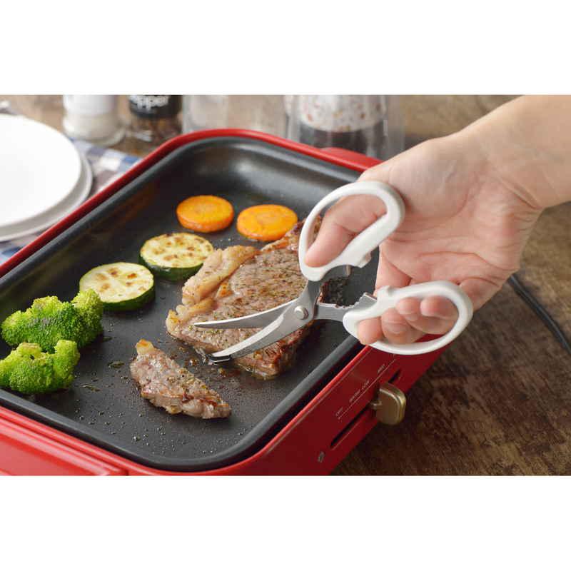 ホットプレートをキズつけずに食材を切り分けることができるキッチンバサミです。