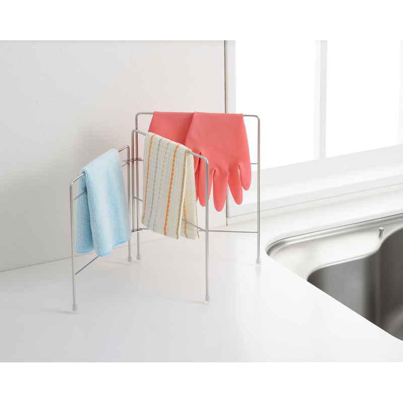 3段階で高さが異なるので、ゴム手袋、布巾、それぞれの定位置を決めて掛けられます。