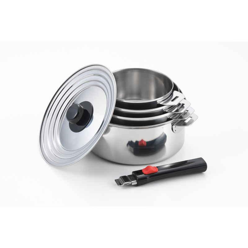 セット内容:6点セット(14cm・16cm・18cm・20cmの鍋、兼用フタ、着脱ハンドル 各1個)