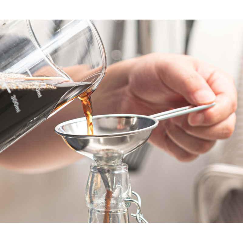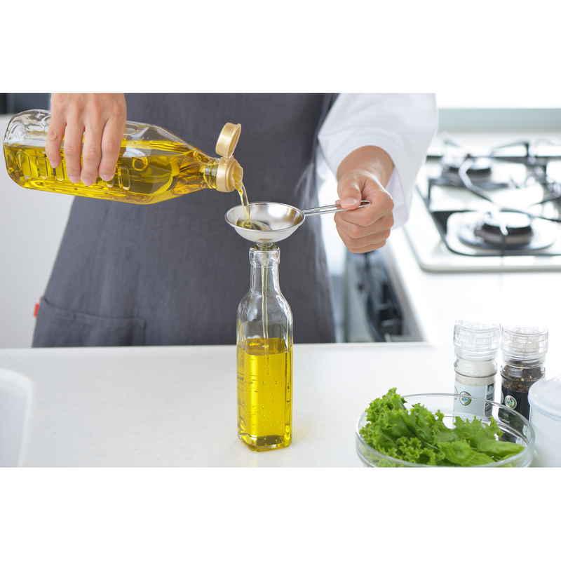 安定した状態で移し替えができる、取っ手付きのろうとです。