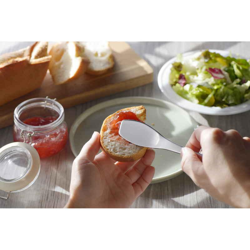 ジャムなどのビンの隅まですくいやすく、パンに塗りやすい形状です。