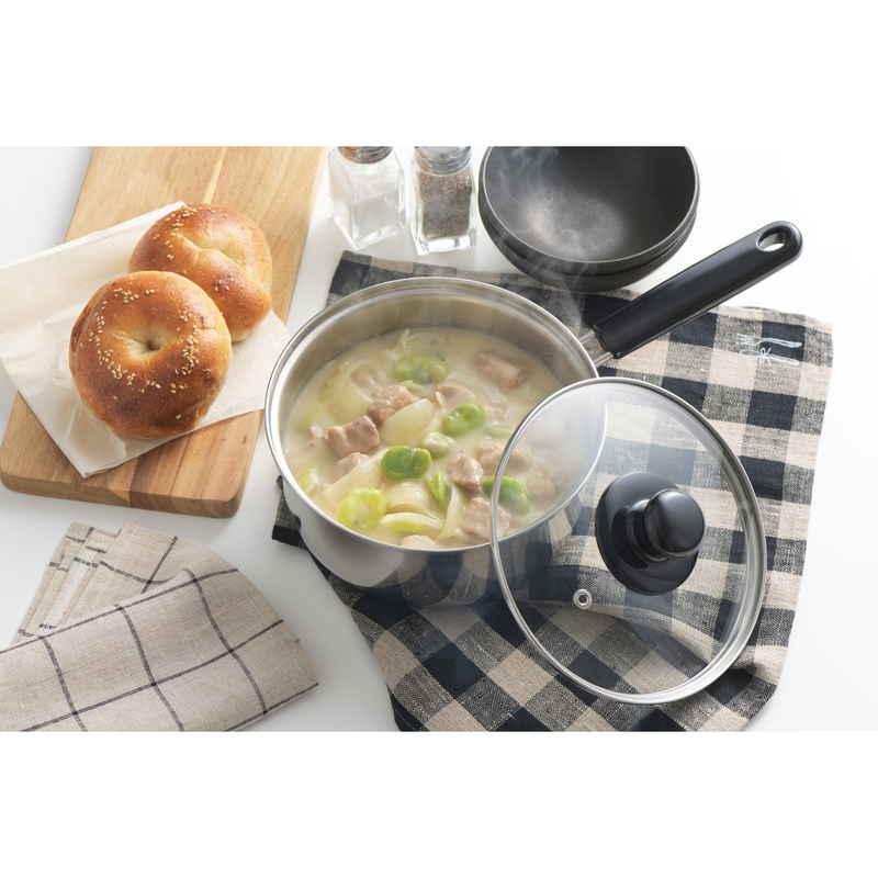 スープやシチュー、煮込み料理など、2〜3人分のお料理を作るのにちょうどいい18cmサイズです。