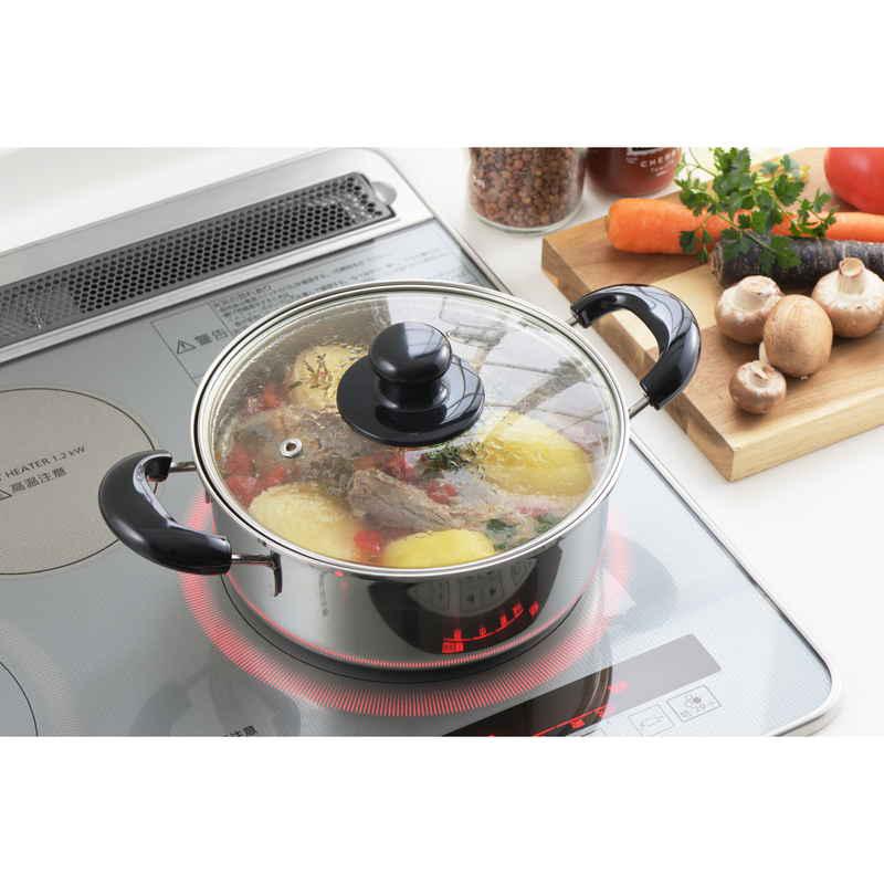 スープやシチュー、煮込み料理など、2〜3人分のお料理を作るのにちょうどいい20cmサイズです。