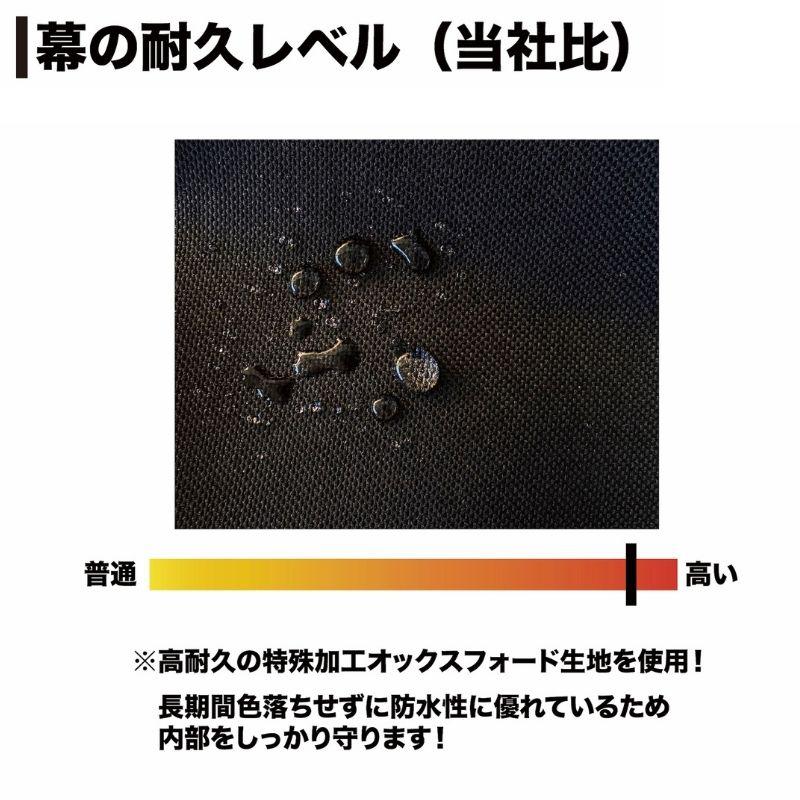 幕はオックスフォード生地で、天後幕一体式立体縫製と前幕品になります。
