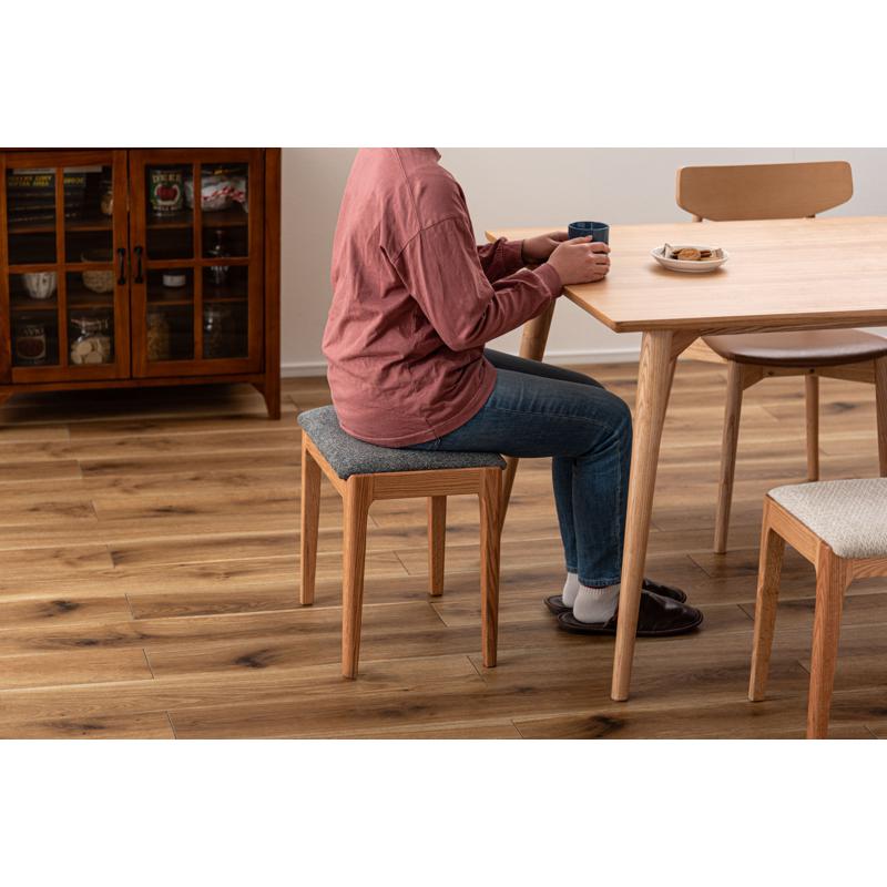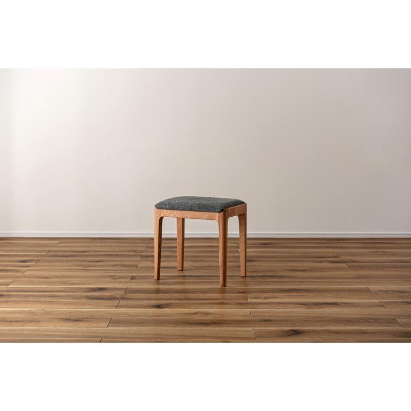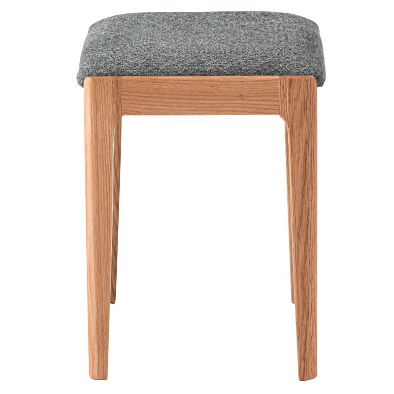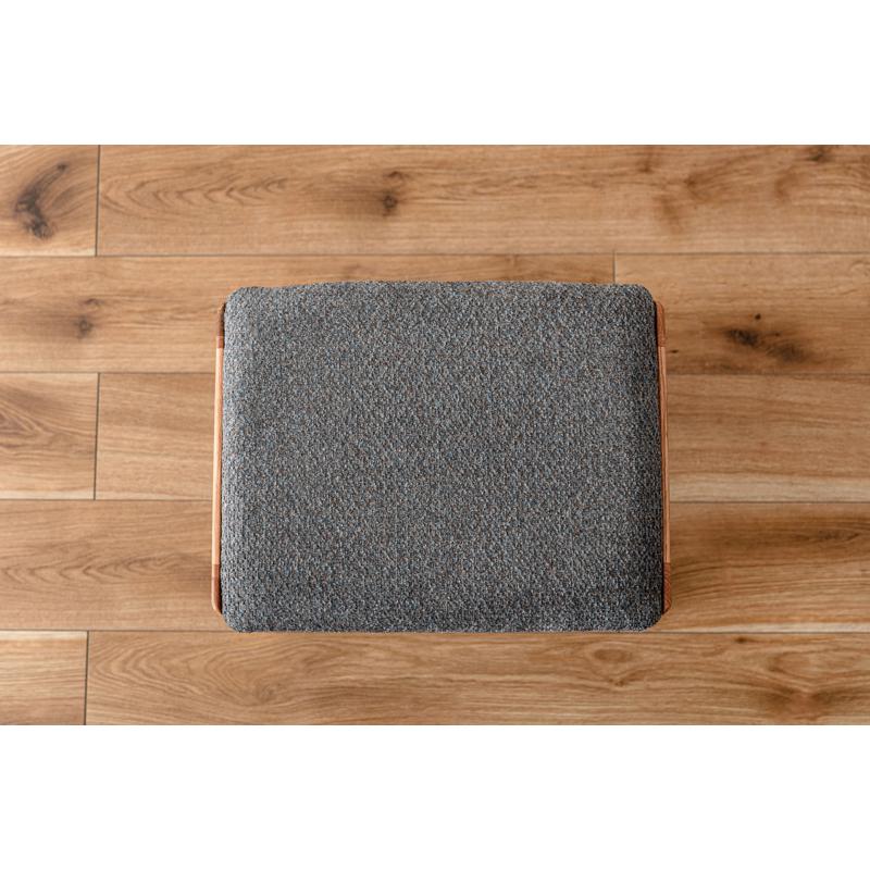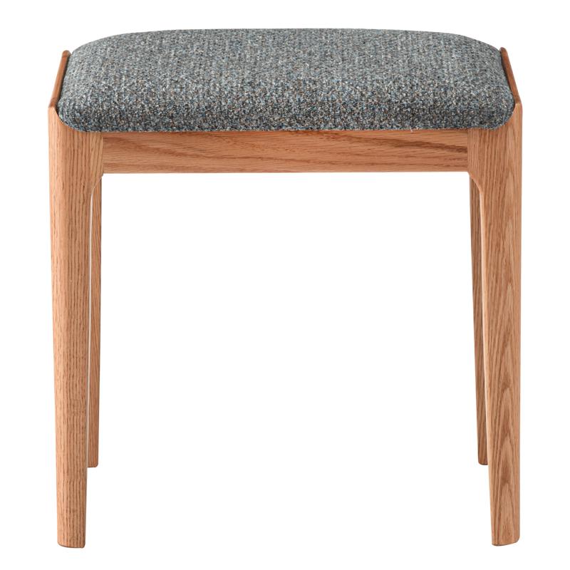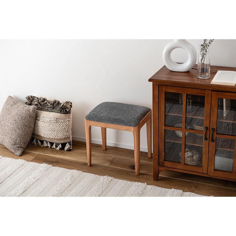 ●気品漂う木製スツール 品のあるレッドオークの色合いに、手触りの良い混色のファブリック生地を掛け合わせたスツール。