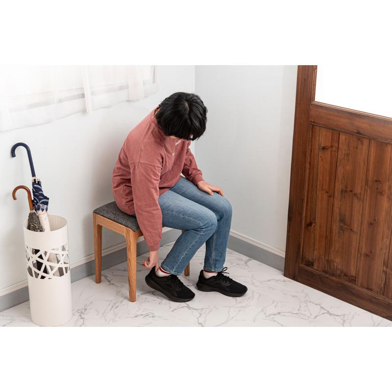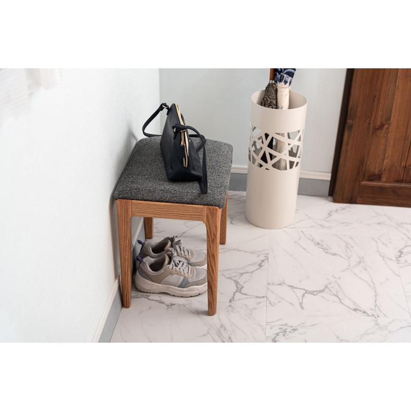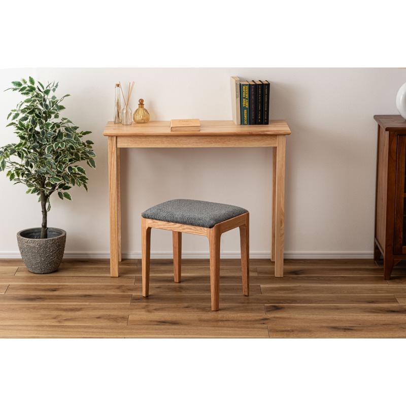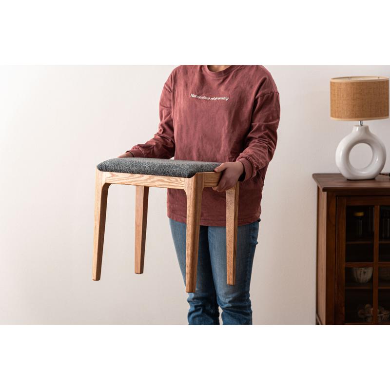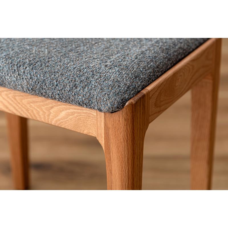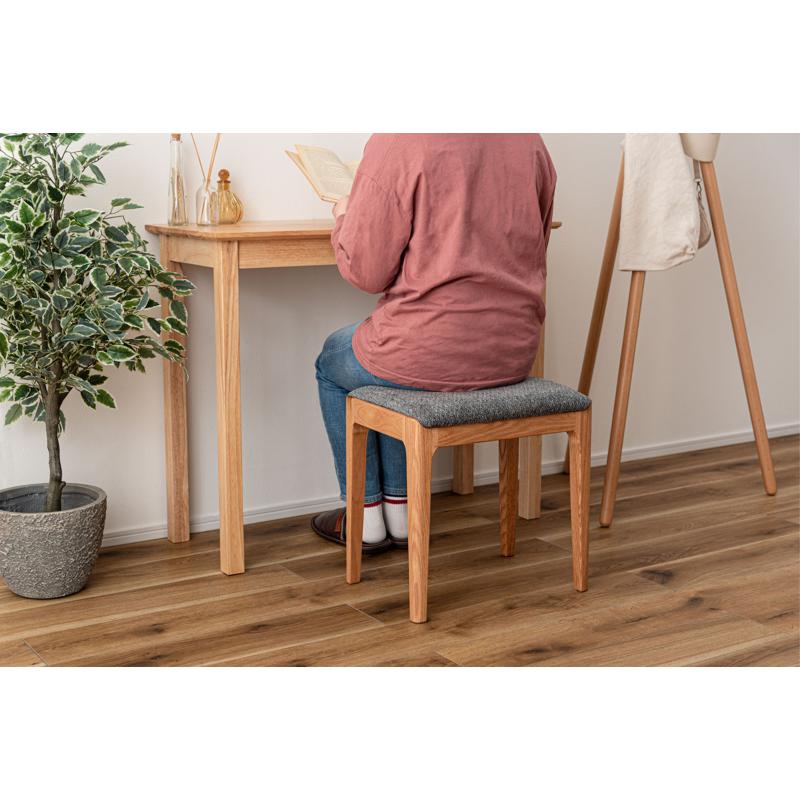 ●気品漂う木製スツール 品のあるレッドオークの色合いに、手触りの良い混色のファブリック生地を掛け合わせたスツール。