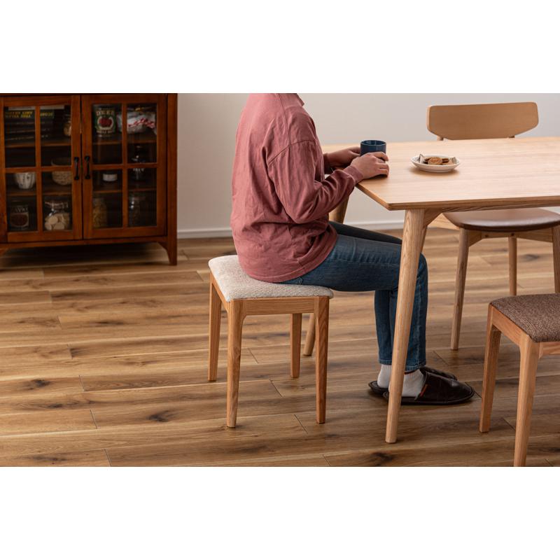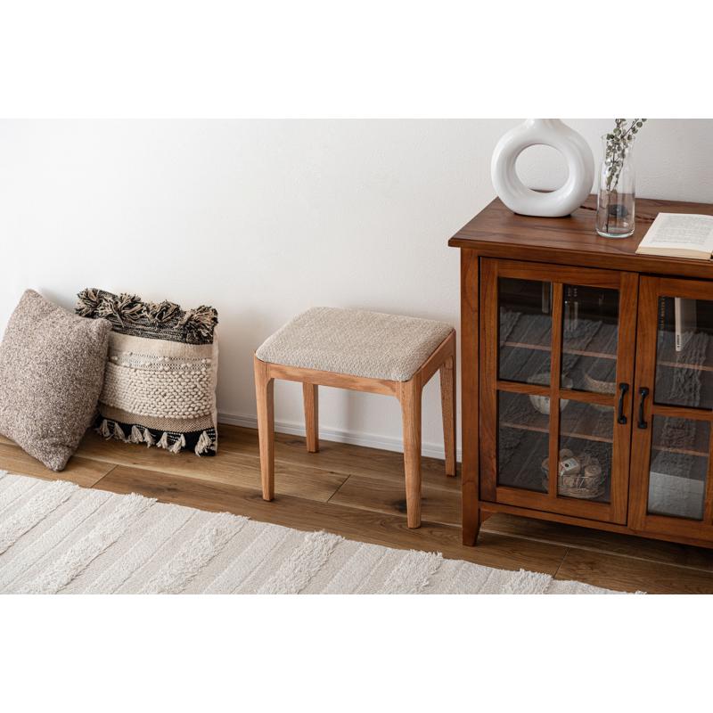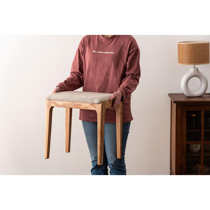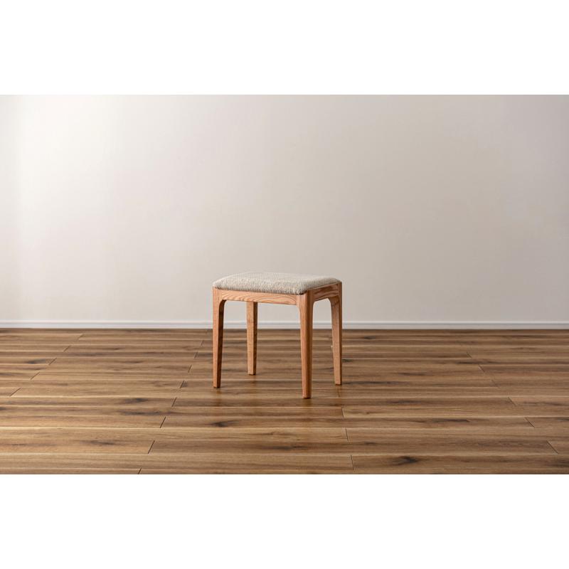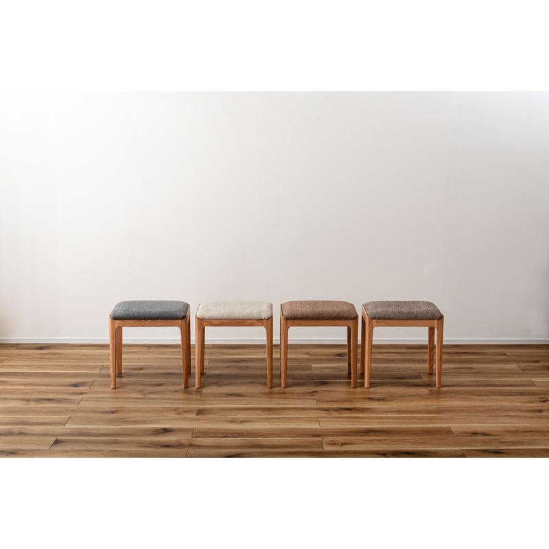 ●気品漂う木製スツール 品のあるレッドオークの色合いに、手触りの良い混色のファブリック生地を掛け合わせたスツール。
