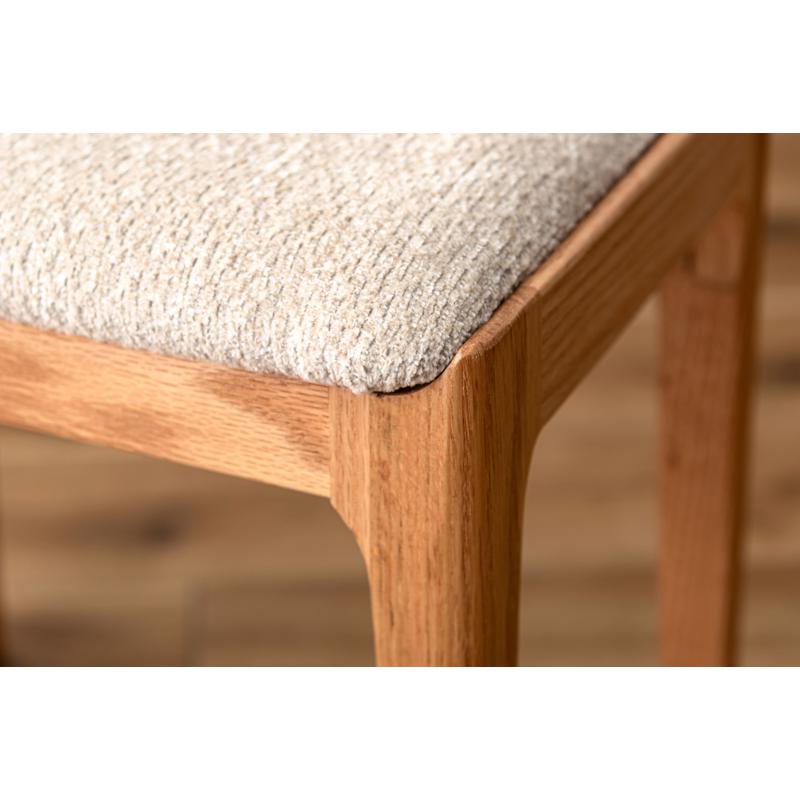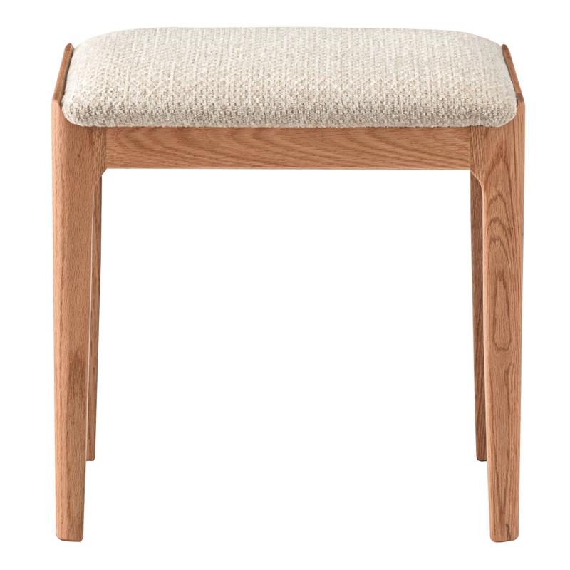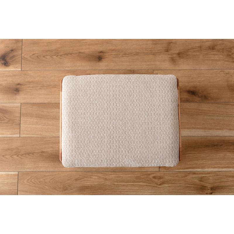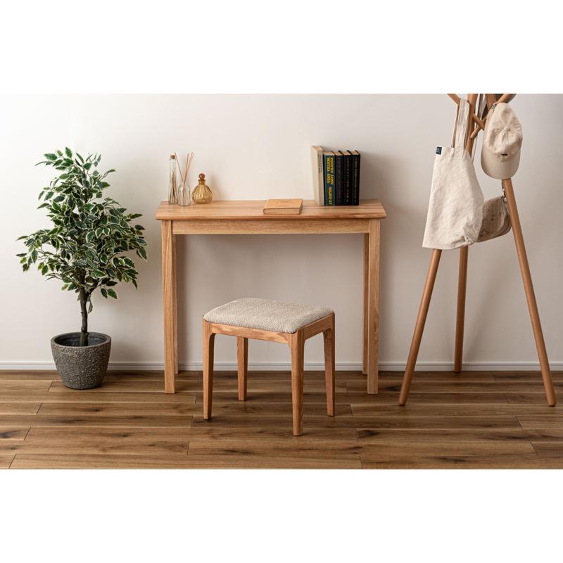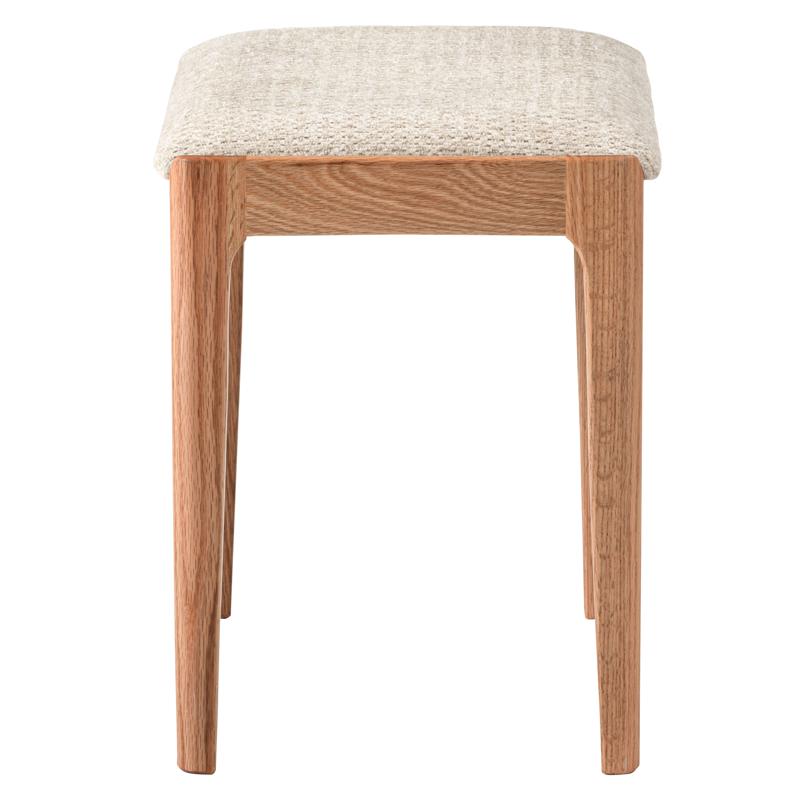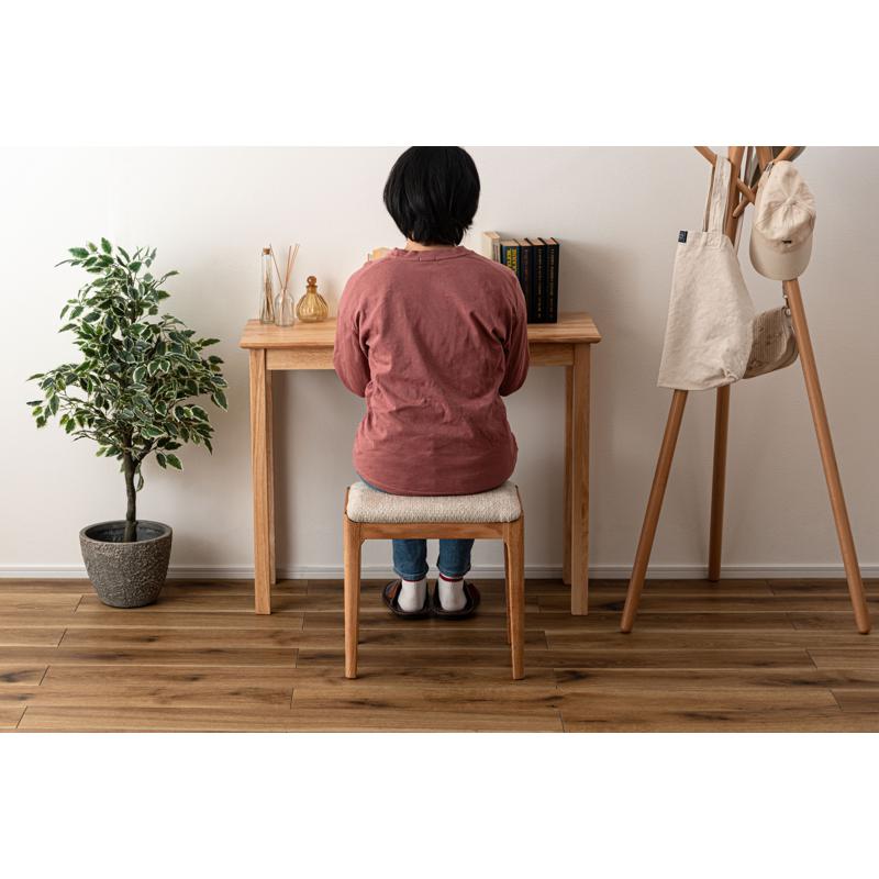 ●気品漂う木製スツール 品のあるレッドオークの色合いに、手触りの良い混色のファブリック生地を掛け合わせたスツール。