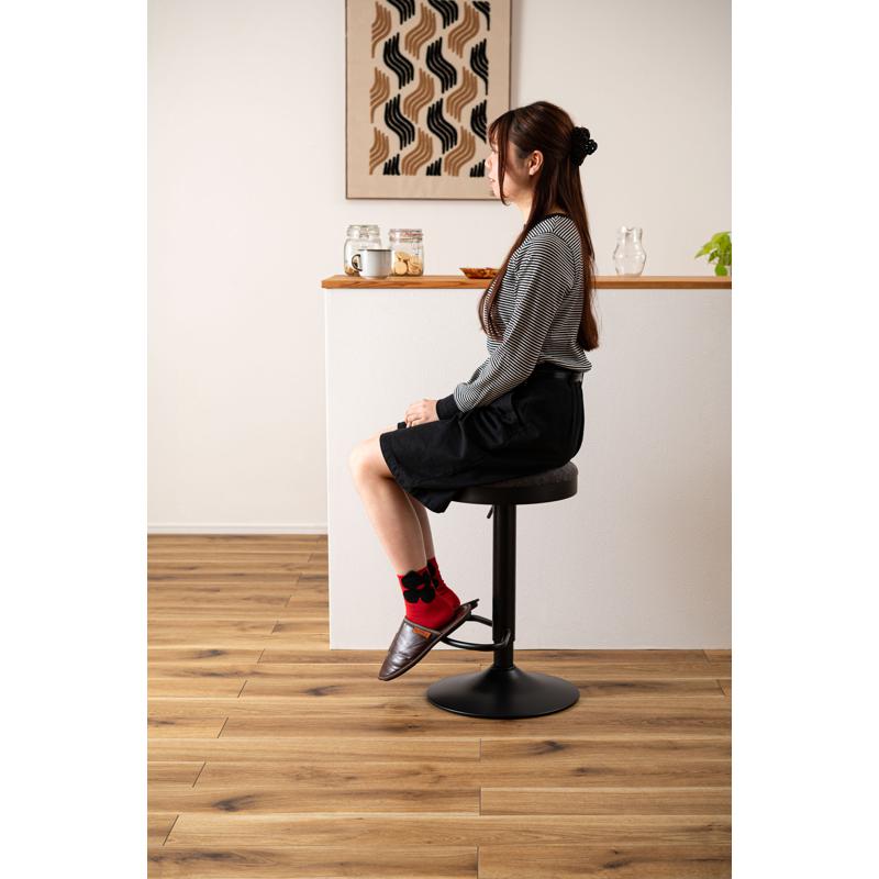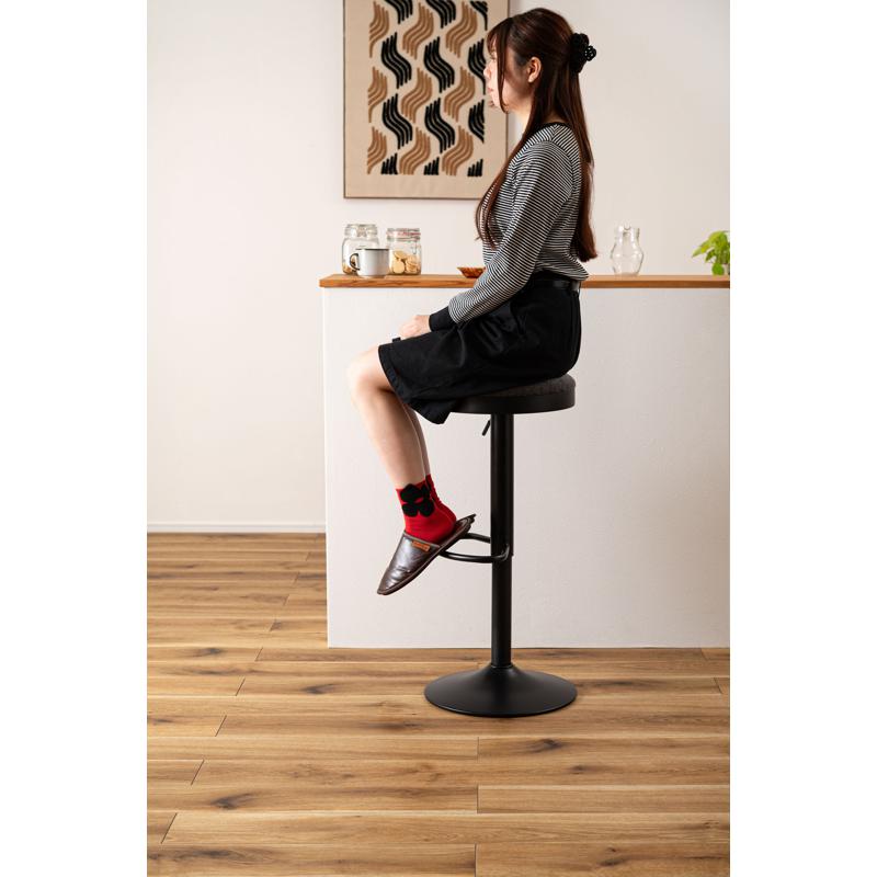 ●手触りが良く風合いのる生地の座面と重厚感のあるブラックスチール脚の組み合わせが、カフェのような雰囲気のある空間を演出。