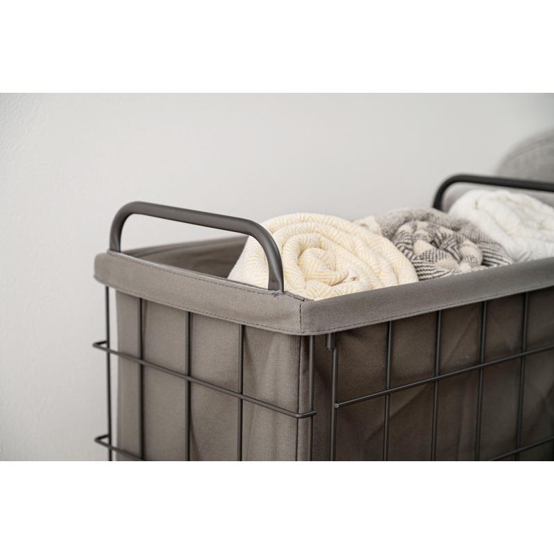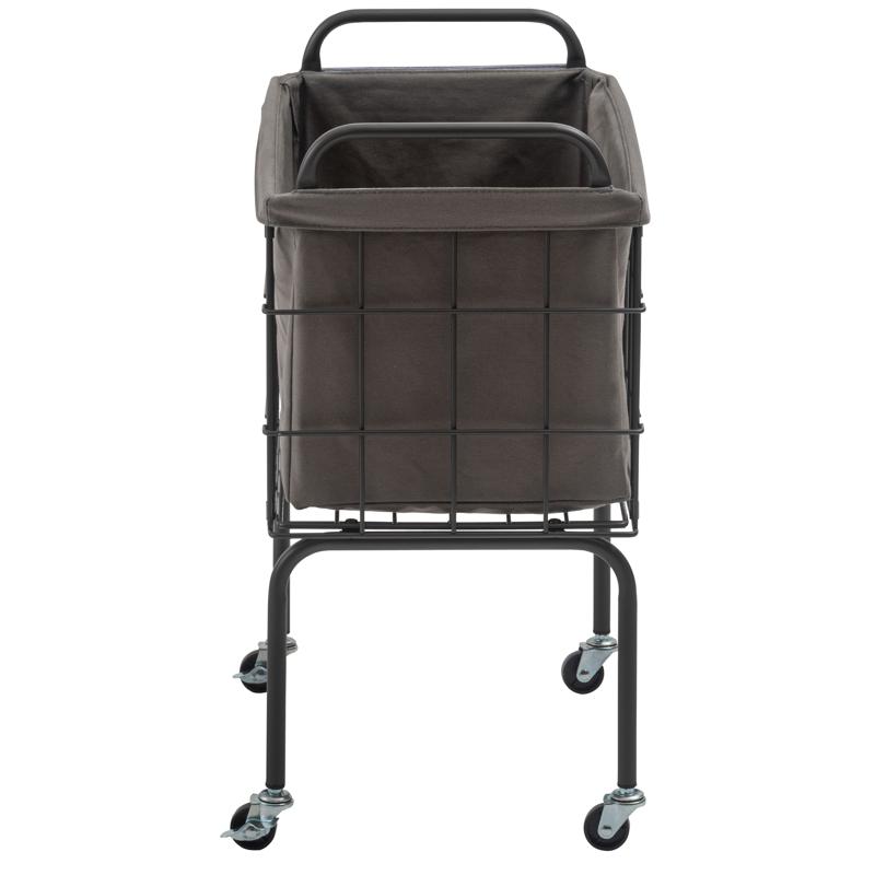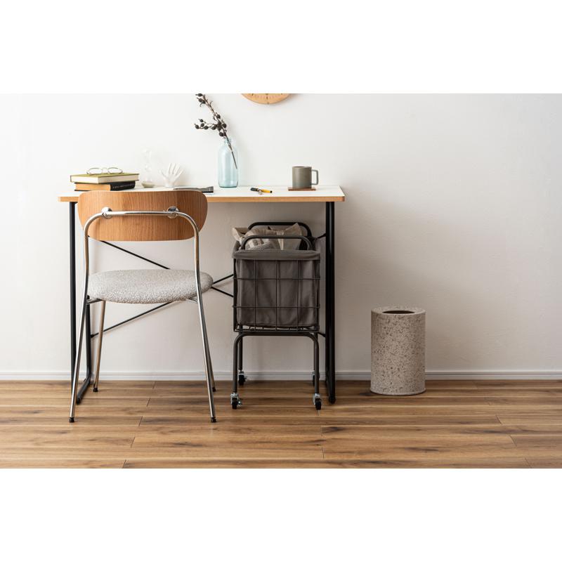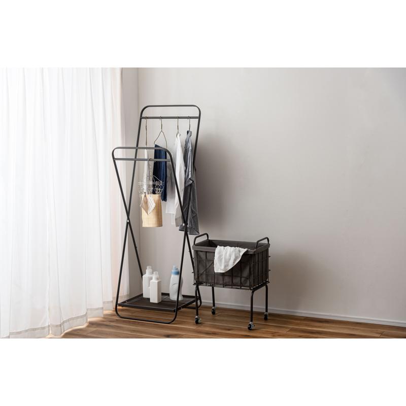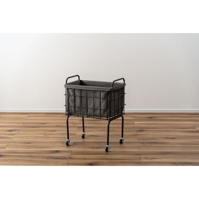 〇空間に合わせたスタイリッシュな収納 スタイリッシュなスチールとやさしいファブリックを組み合わせたバスケットワゴン