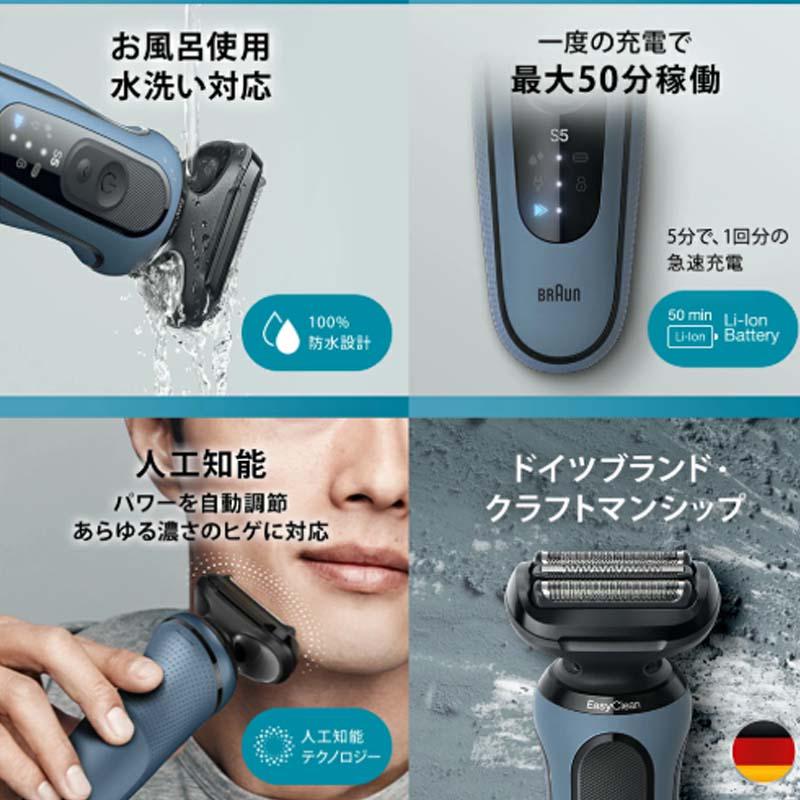 [即納在庫品] ブラウン 充電式シェーバー 52-A1200s 密着シリーズ5 3枚刃 アズールブルー シェーバー