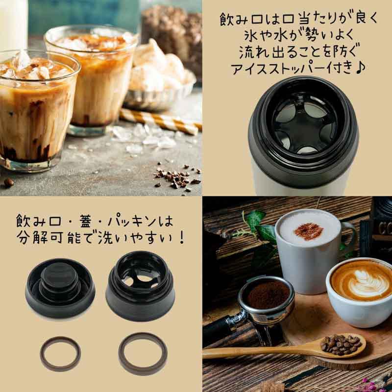 ・飲み口キャップは口当たりがよく、氷や氷が勢いよく流れ出ることを防ぐアイスストッパー付