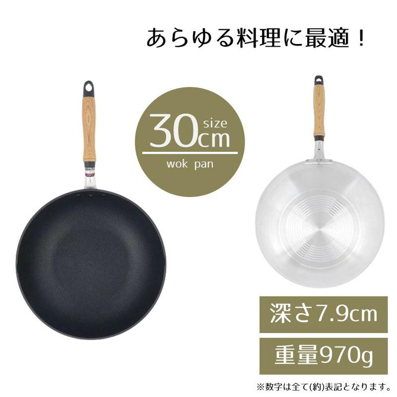 ベストコ 深型フライパン 30cm ウォックパン ガス火専用 日本製 シルバー テフロンTMプラチナ 絢銀キャスト フッ素 焦げ付きにくい キズに強い 耐久力 握りやすい MA-5505