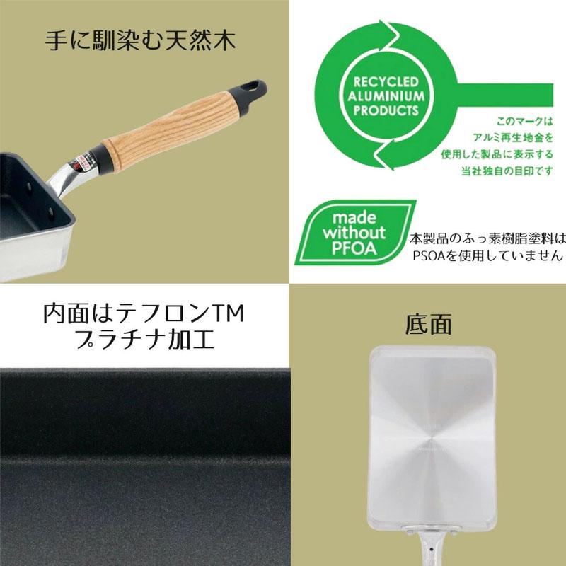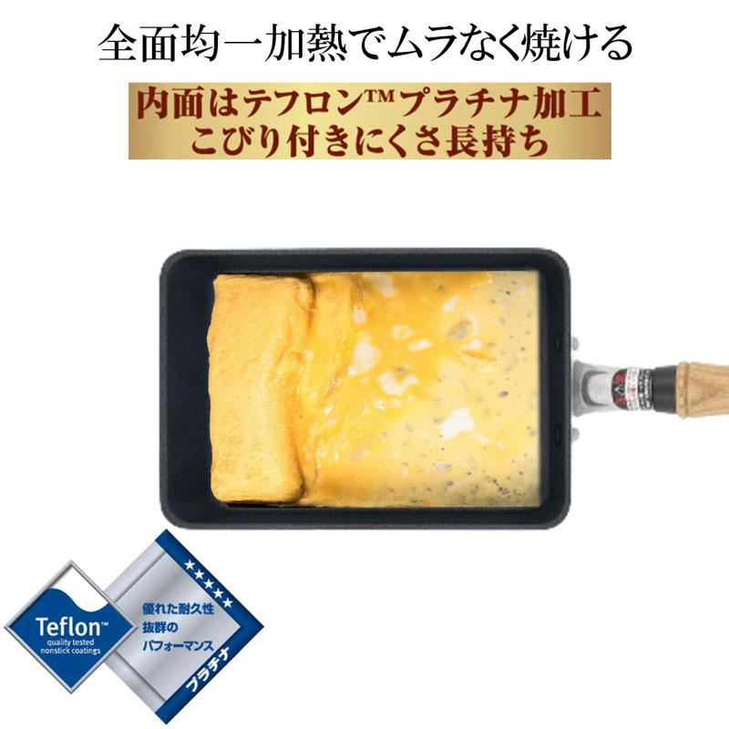 卵焼き器 玉子焼き器 卵焼き 玉子焼き エッグパン 13×18cm テフロンTMプラチナ 絢銀キャスト シルバー 日本製 フッ素 焦げ付きにくい キズに強い 耐久力 握りやすい スタイリッシュ シンプル ガス火専用