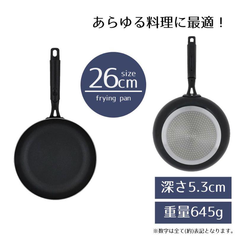 フライパン 片手鍋 鍋 片手 26cm 調理の相棒 ブラック 軽い 扱いやすい 使いやすい 汚れが目立ちにくい 簡単お手入れ IH ガス火 ガス オール熱源