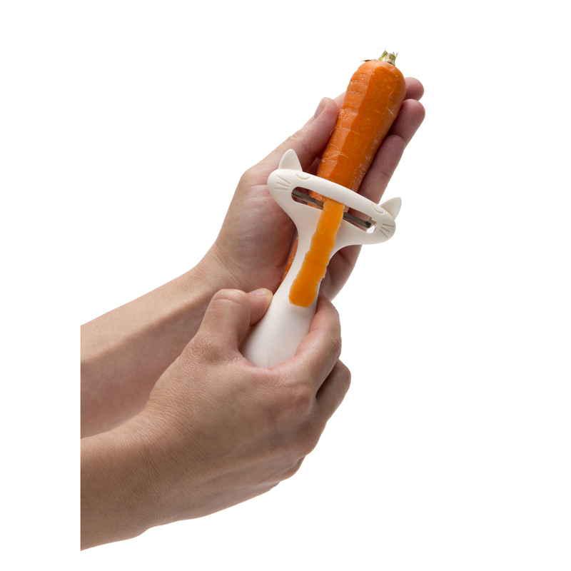皮をむいたらあっかんべーをしているかのような、猫形のピーラーです。