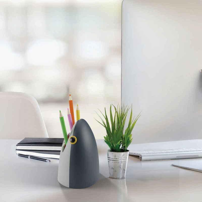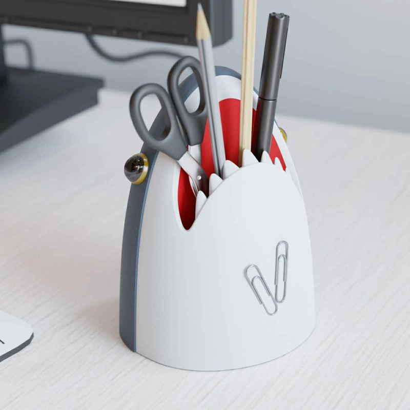 サメにかみつかれたようなデザインのペンスタンドです。