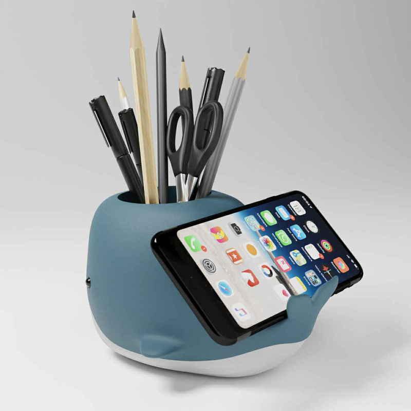 クジラの潮吹きをイメージしたようなデザインのペンスタンドです。