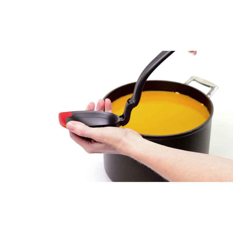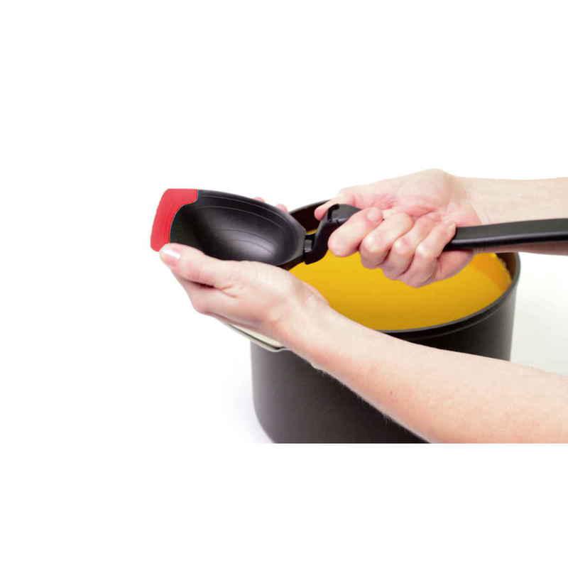 ハンドル部分をねじることで、スプーンまたはレードルとして使い分けることができる一石二鳥の便利グッズです。
