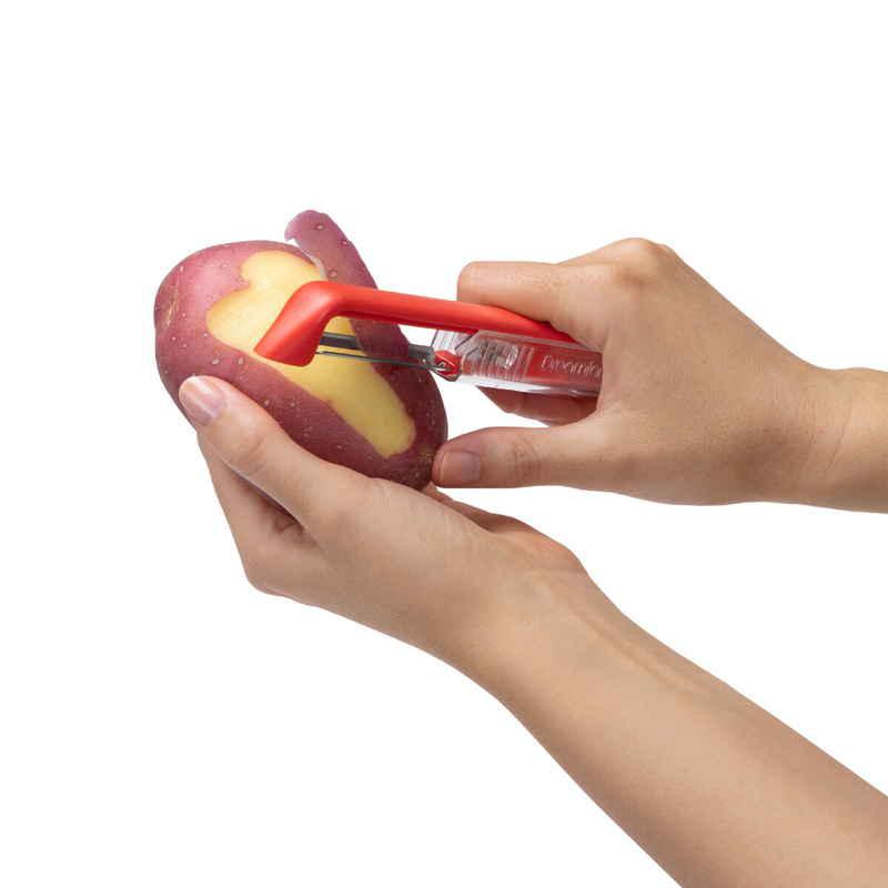 小さい食材や丸い食材、トマトのような薄い皮の食材の皮むきに最適です。