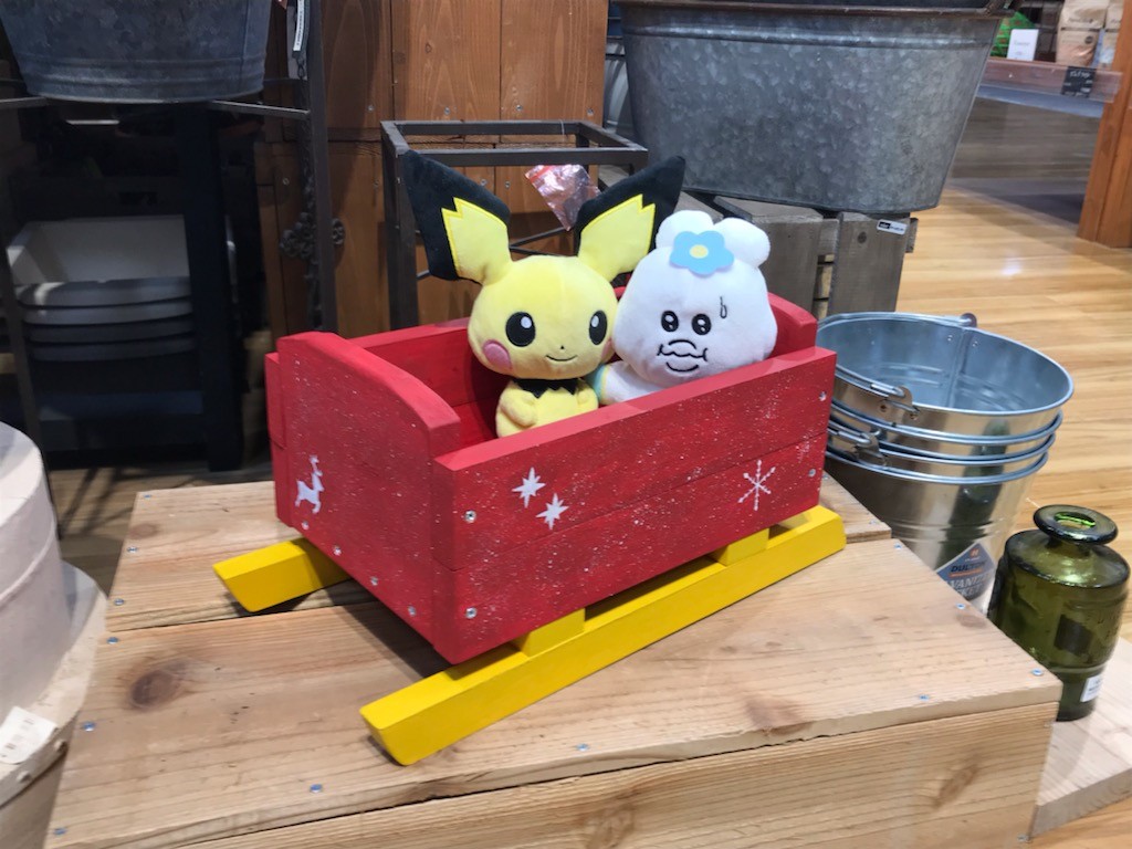 - ぬいぐるみを入れておけるそり型の物入れです!ほかにも植物を入れて飾ることもできます。