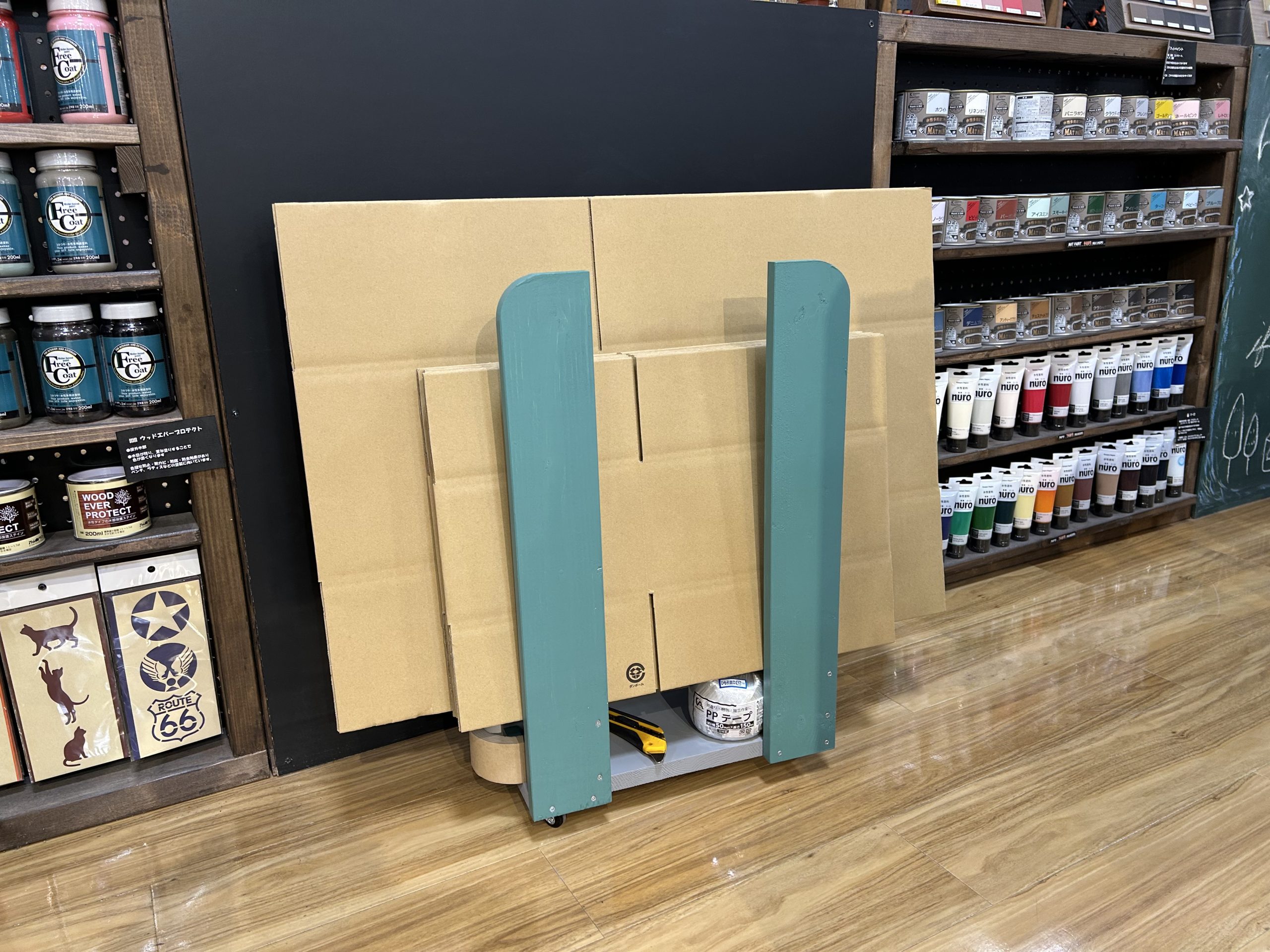 - 使わなくなった段ボールをまとめて立てて置くことが出来ます!紐やガムテープも一カ所にまとめておけます。