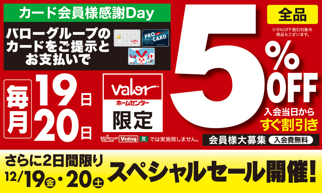 12月19日号 カード会員様感謝DAY19・20日5%OFF!