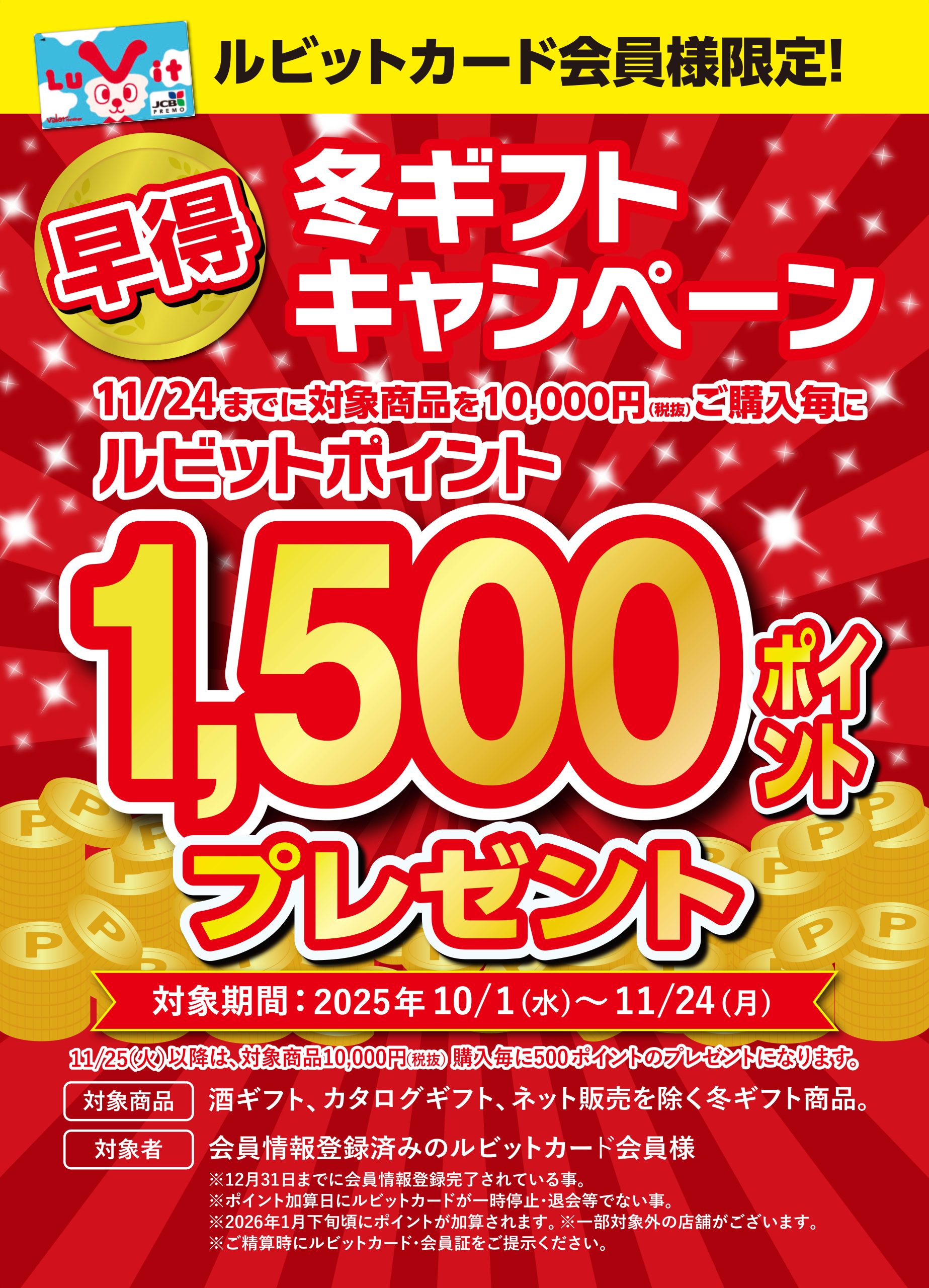 【ルビットカード会員限定】早得 冬ギフトキャンペーン