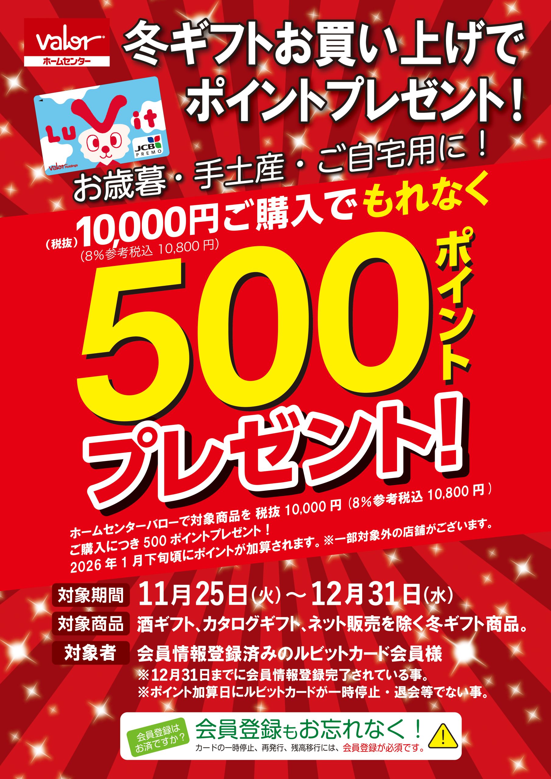 【ルビットカード会員限定】早得 冬ギフトキャンペーン