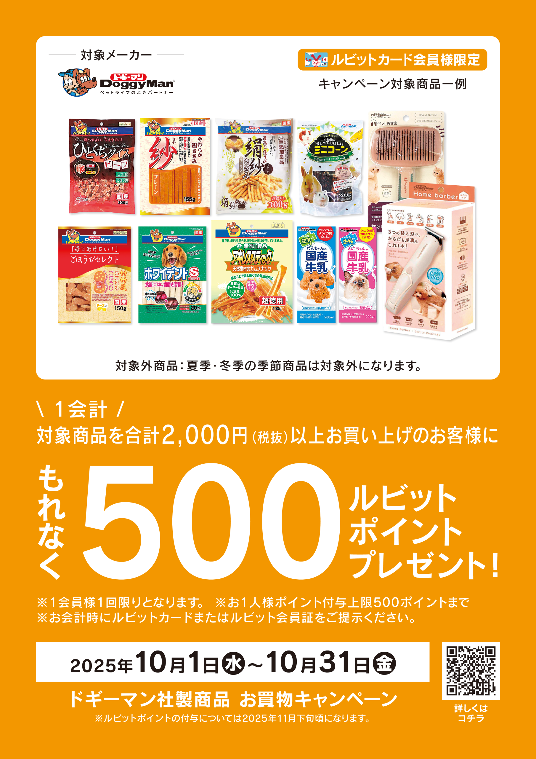 【ルビットカード会員様限定】ドギーマン社製商品お買物キャンペーン!