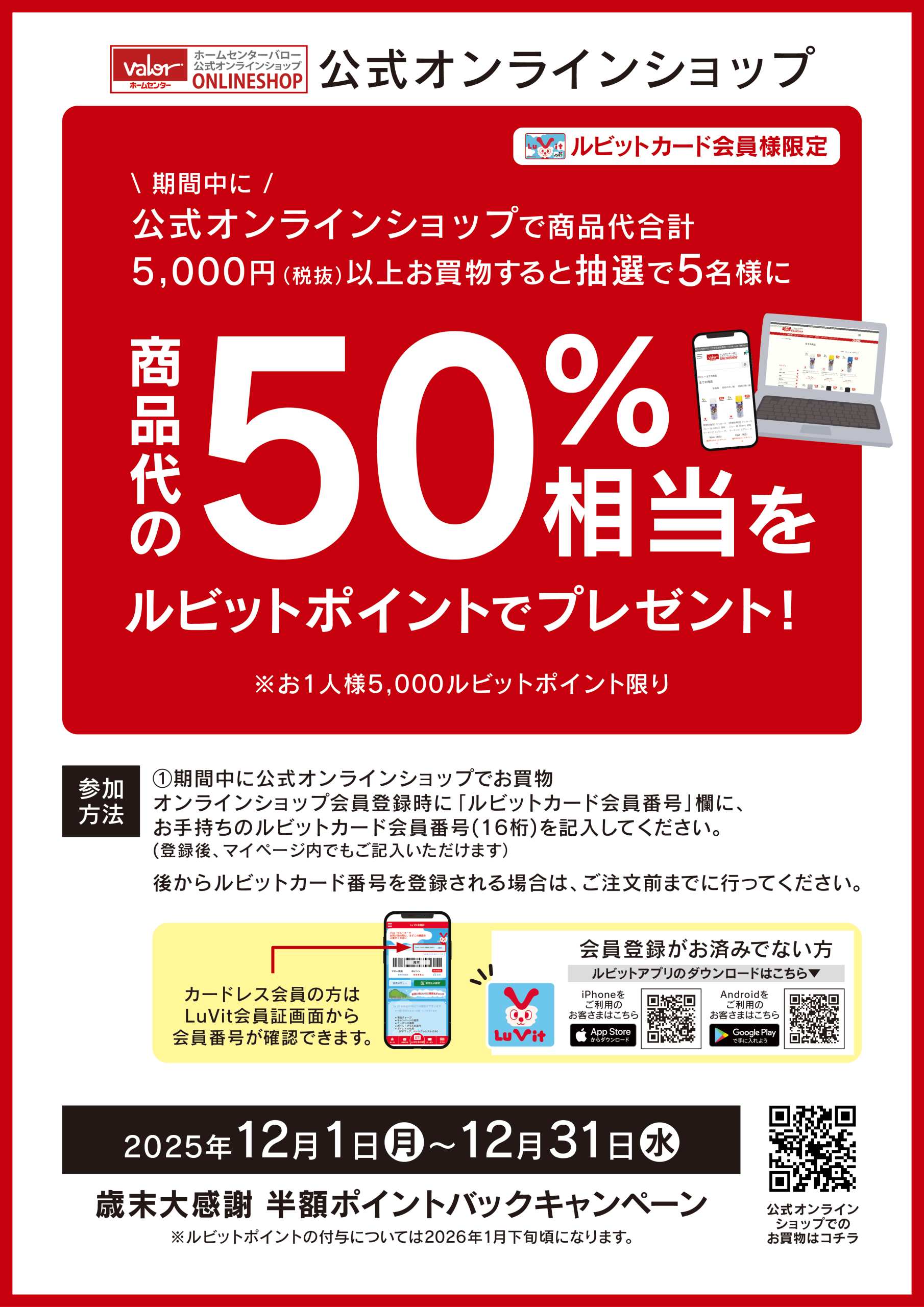 【ルビットカード会員様限定】公式オンラインショップ 歳末大感謝祭 キャンペーン!