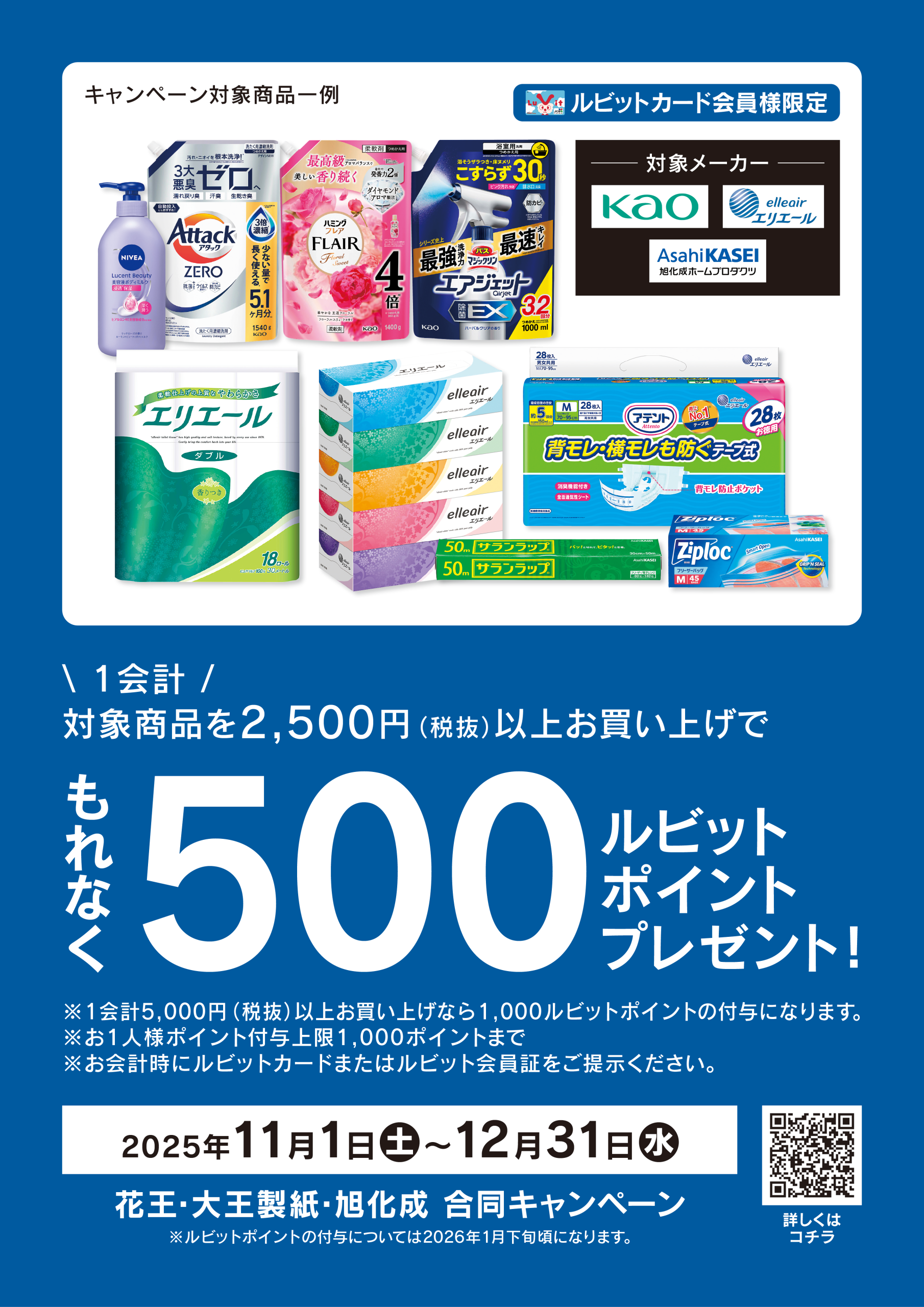 【ルビットカード会員様限定】花王・大王製紙・旭化成 合同キャンペーン!