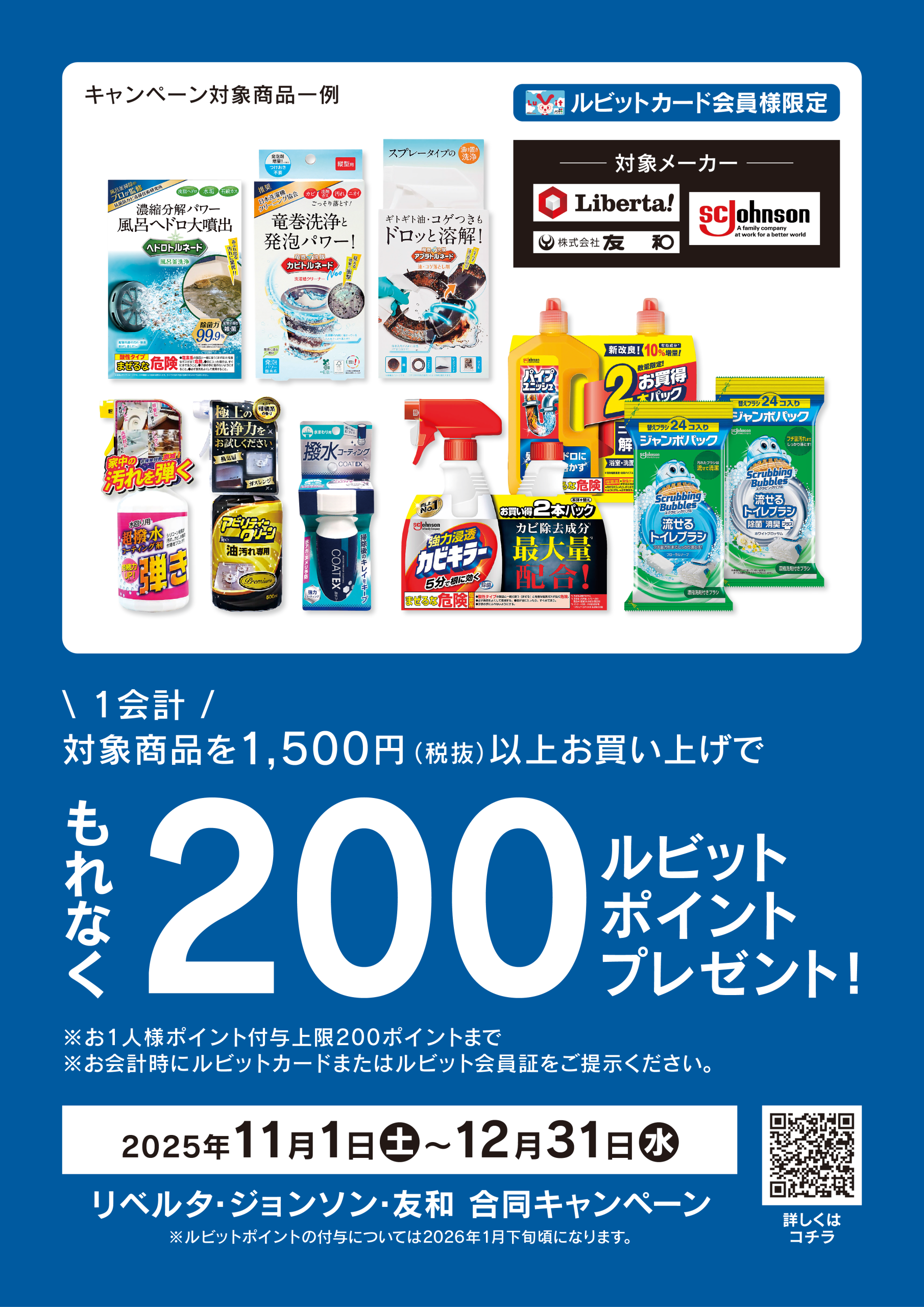 【ルビットカード会員様限定】リベルタ・ジョンソン・友和 合同キャンペーン!